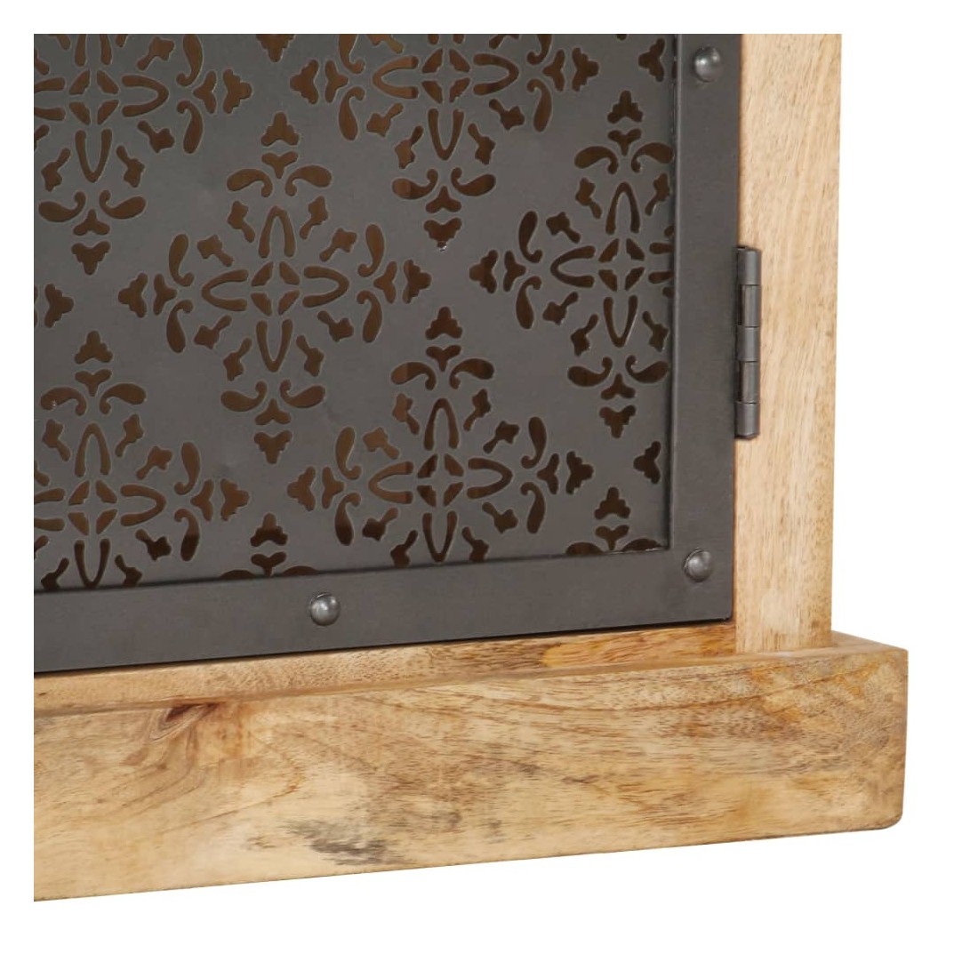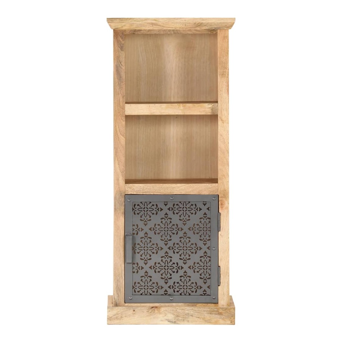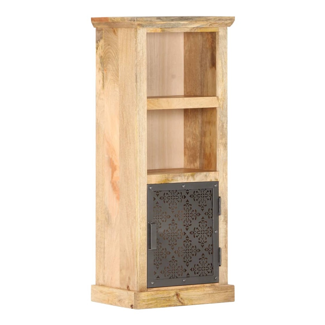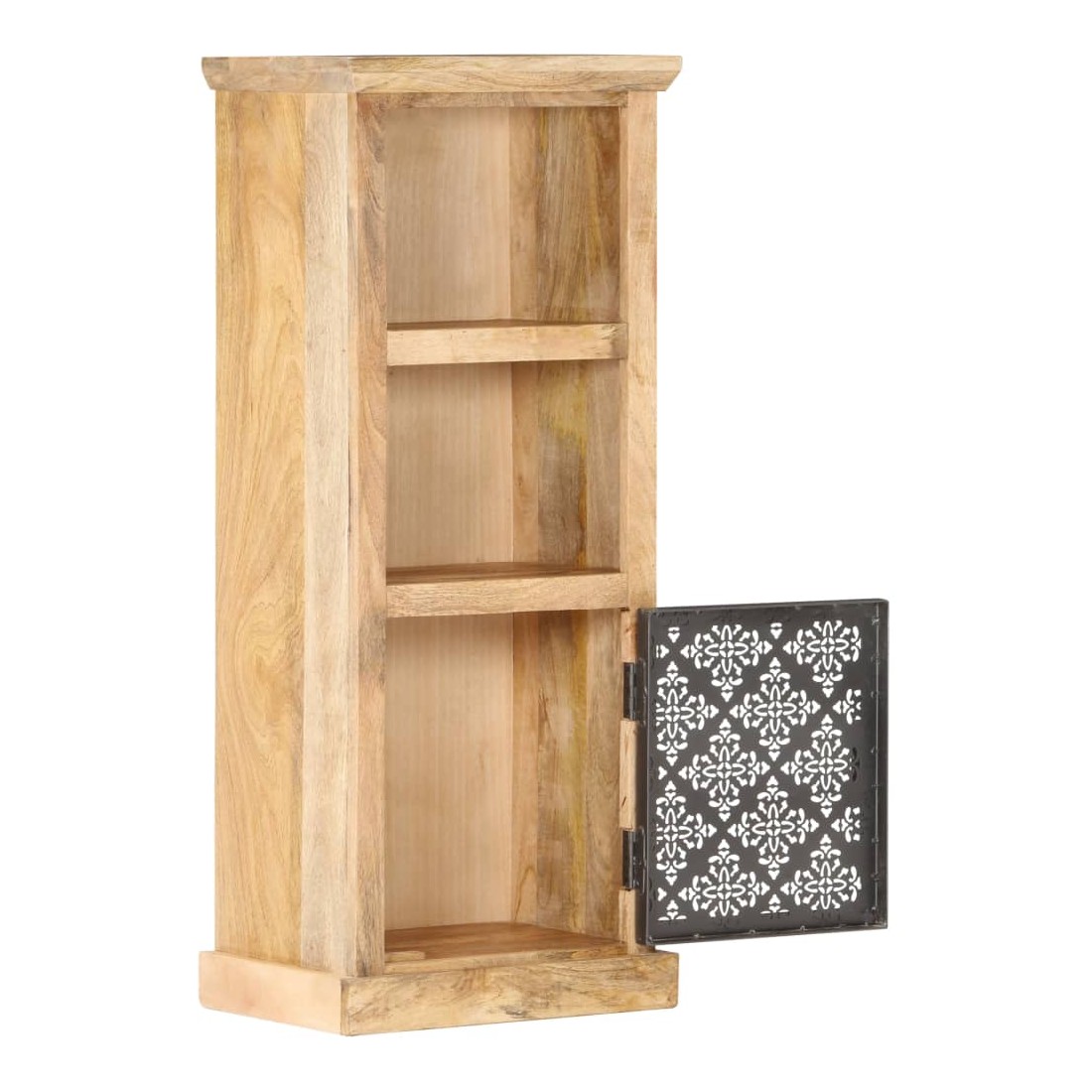 Notre buffet élégant est un véritable accroche-regard pour votre décoration intérieure, offrant une solution idéale pour garder vos articles organisés et hors de vue. Cette armoire haute est en bois de manguier massif, avec une belle finition par polissage, peinture et laquage, ce qui lui confère un aspect raffiné. Les portes en acier au design creux ajoutent à la beauté de l'armoire. Elle comprend deux étagères ouvertes et une porte, offrant un grand espace de rangement pour ranger et afficher vos livres, magazines, plantes en pot, photos encadrées et autres effets personnels.