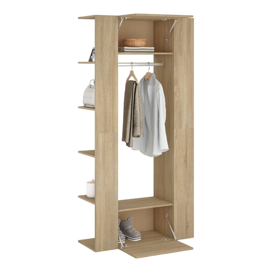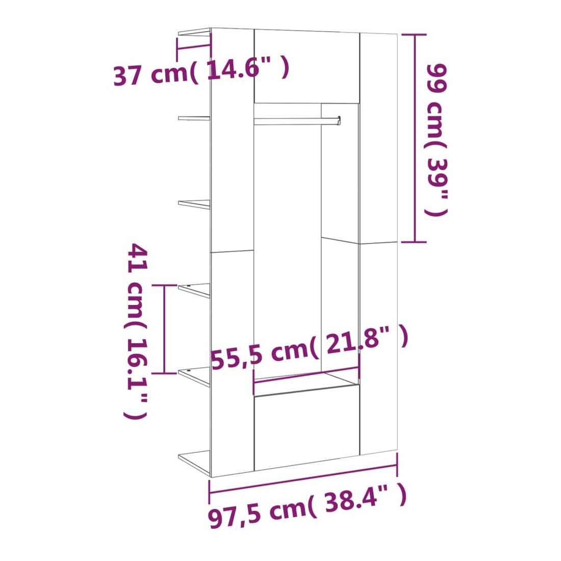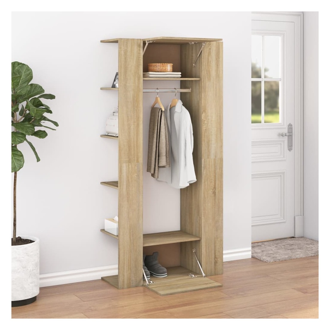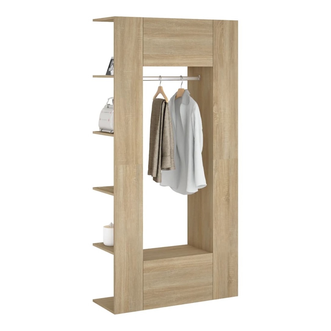 Ces armoires de couloir classiques sont censées être un économiseur d'espace tout en prenant peu de place au sol, mais offrent un grand espace de rangement. Matériau durable : le bois d'ingénierie est d'une qualité exceptionnelle avec une surface lisse et présente également résistance, stabilité et résistance à l'humidité.Grand espace de rangement : le meuble d'entrée avec étagères, tringle à vêtements et compartiments peut offrir un grand espace de rangement pour ranger et afficher vos collections de livres, des objets décoratifs comme des cadres photo et suspendre vos vêtements.Design spécial : le rangement de couloir peut être monté sur les murs pour maximiser votre espace de vie. De plus, des compartiments ouverts et fermés protègent les objets de la poussière.Look élégant : le meuble d'entrée s'intègre parfaitement dans votre espace de vie grâce à son design moderne. Attention :Afin d'éviter qu'il ne bascule, ce produit doit être utilisé avec le dispositif de fixation murale fourni.Remarque :Chaque produit est livré avec un manuel de montage dans la boîte pour un montage facile.Les vis et les chevilles pour l'intérieur du mur ne sont pas incluses. Recherchez et utilisez des vis et des chevilles adaptées à vos murs. Si vous n'êtes pas sûr, demandez conseil à un professionnel. Lisez et suivez attentivement chaque étape des instructions.