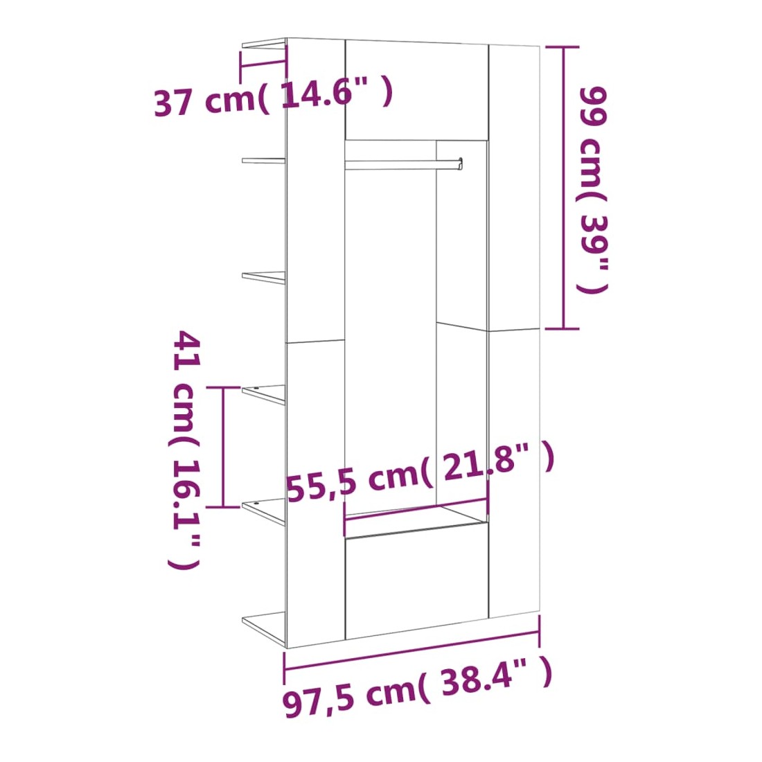 Ces armoires de couloir classiques sont censées être un économiseur d'espace tout en prenant peu de place au sol, mais offrent un grand espace de rangement. Matériau durable : le bois d'ingénierie est d'une qualité exceptionnelle avec une surface lisse et présente également résistance, stabilité et résistance à l'humidité.Grand espace de rangement : le meuble d'entrée avec étagères, tringle à vêtements et compartiments peut offrir un grand espace de rangement pour ranger et afficher vos collections de livres, des objets décoratifs comme des cadres photo et suspendre vos vêtements.Design spécial : le rangement de couloir peut être monté sur les murs pour maximiser votre espace de vie. De plus, des compartiments ouverts et fermés protègent les objets de la poussière.Look élégant : le meuble d'entrée s'intègre parfaitement dans votre espace de vie grâce à son design moderne. Attention :Afin d'éviter qu'il ne bascule, ce produit doit être utilisé avec le dispositif de fixation murale fourni.Remarque :Chaque produit est livré avec un manuel de montage dans la boîte pour un montage facile.Les vis et les chevilles pour l'intérieur du mur ne sont pas incluses. Recherchez et utilisez des vis et des chevilles adaptées à vos murs. Si vous n'êtes pas sûr, demandez conseil à un professionnel. Lisez et suivez attentivement chaque étape des instructions.