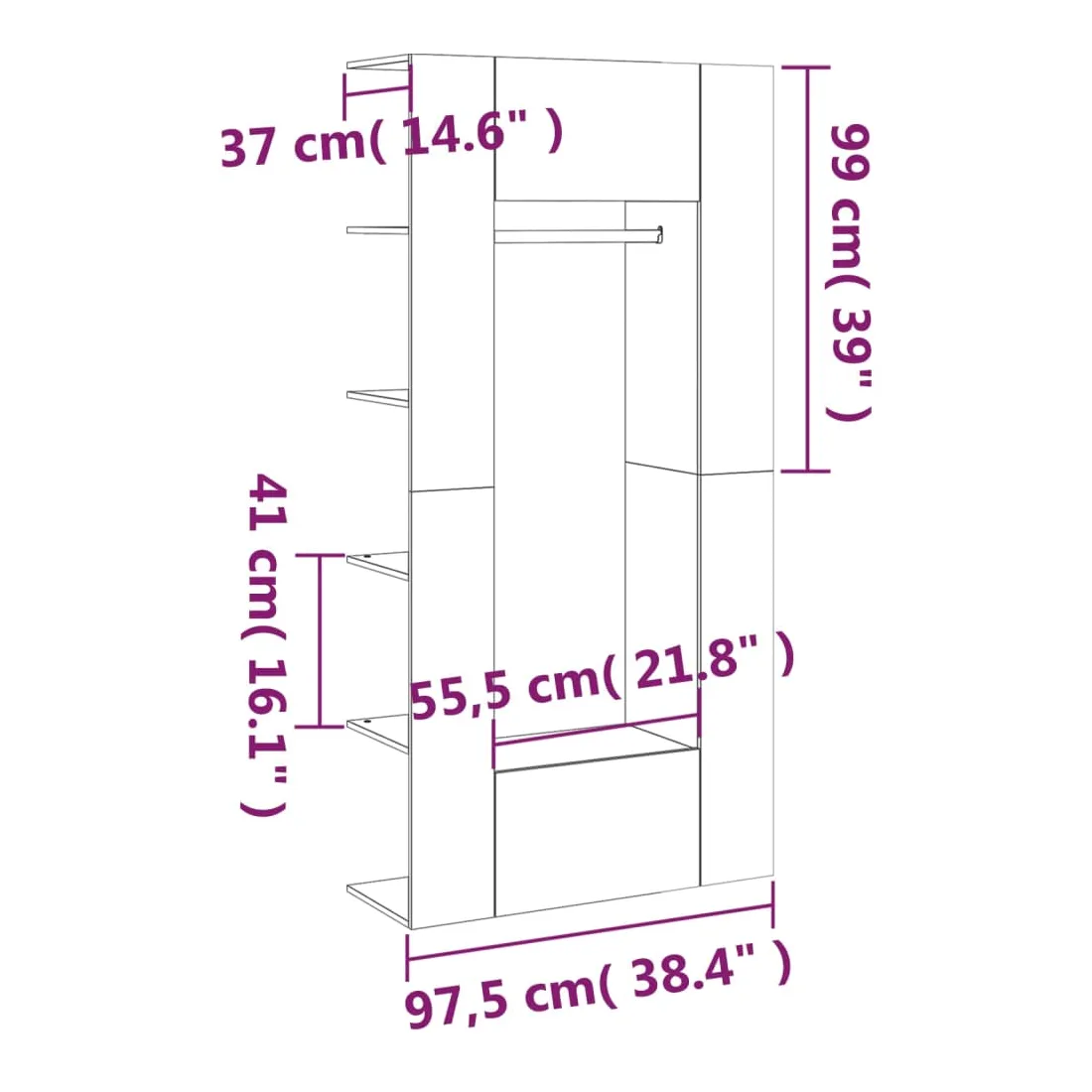 vidaXLCes armoires de couloir classiques sont censées être un économiseur d'espace tout en prenant peu de place au sol, mais offrent un grand espace de rangement. Matériau durable : le bois d'ingénierie est d'une qualité exceptionnelle avec une surface lisse et présente également résistance, stabilité et résistance à l'humidité.Grand espace de rangement : le meuble d'entrée avec étagères, tringle à vêtements et un compartiment peut offrir un grand espace de rangement pour ranger et afficher vos collections de livres, des objets décoratifs comme des cadres photo et suspendre vos vêtements.Design spécial : le rangement de couloir peut être monté sur les murs pour maximiser votre espace de vie. De plus, les compartiments ouverts et fermés protègent les articles de la poussière.Look élégant : le meuble d'entrée s'intègre parfaitement dans votre espace de vie grâce à son design moderne. Attention :Afin d'éviter qu'il ne bascule, ce produit doit être utilisé avec le dispositif de fixation murale fourni. Remarque :Chaque produit est livré avec un manuel de montage dans la boîte pour un montage facile.Les vis et les chevilles pour l'intérieur du mur ne sont pas incluses. Recherchez et utilisez des vis et des chevilles adaptées à vos murs. Si vous n'êtes pas sûr, demandez conseil à un professionnel. Lisez et suivez attentivement chaque étape des instructions.