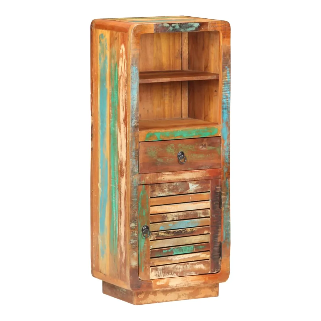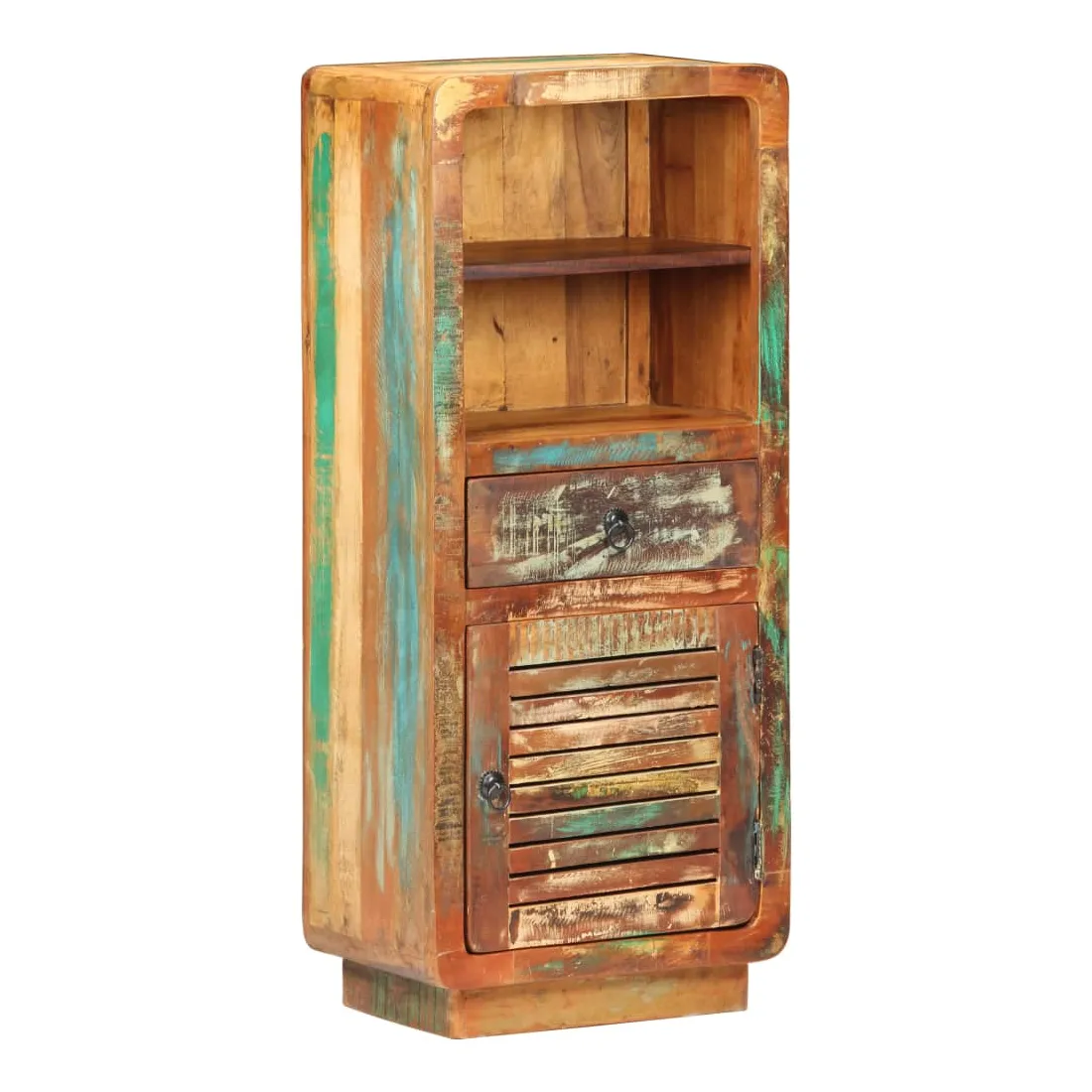 Ce buffet en bois affiche un charme vintage et est destiné à être le centre d’attraction de votre intérieur existant. Le buffet est fait de bois de récupération massif avec une finition de couleur mélangée, provenant des solives, des planchers et des poutres de soutien de vieux bâtiments démolis. De plus, il peut se composer de différents types de bois tels que le teck, le bois dur, le bois tropical, le bois de manguier, etc. Cela signifie que le bois de récupération conserve les caractéristiques de ces différents types de bois. Le bois de récupération est déjà vieilli, altéré et séché. Par conséquent, il ne rétrécit pas et ne se plie pas. Cette armoire latérale dispose également d’une porte, d’un tiroir et de deux étagères offrant un grand espace de rangement. Remarque importante : les couleurs et les grains varient d'une pièce à l'autre, rendant chaque pièce unique. La livraison est aléatoire, ce qui garantit l'exclusivité et l'individualité de votre produit.