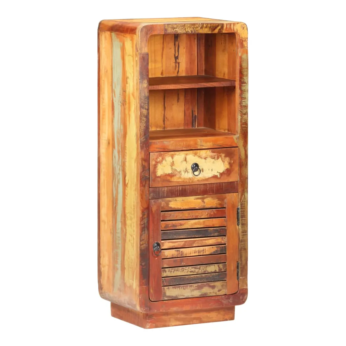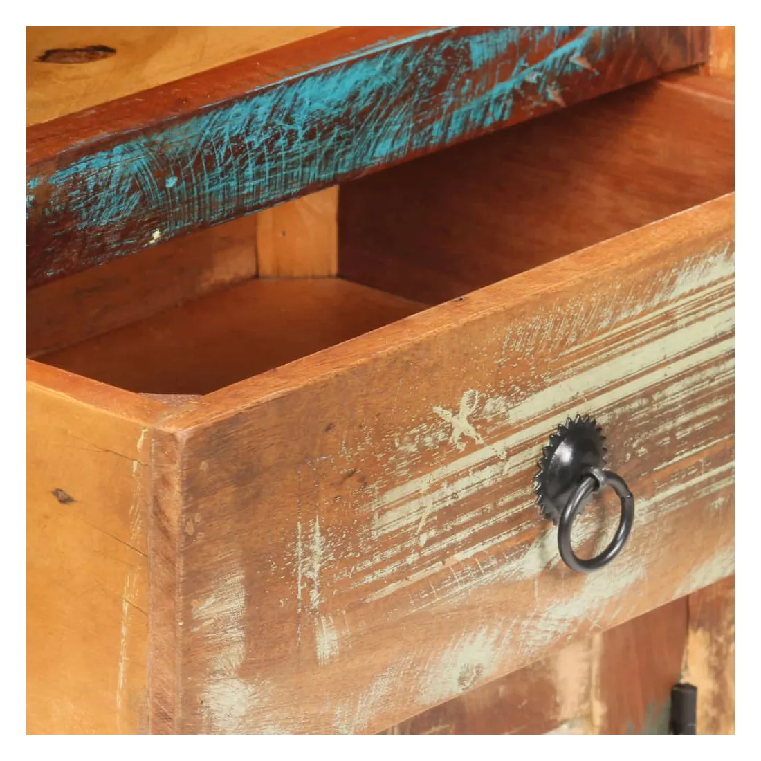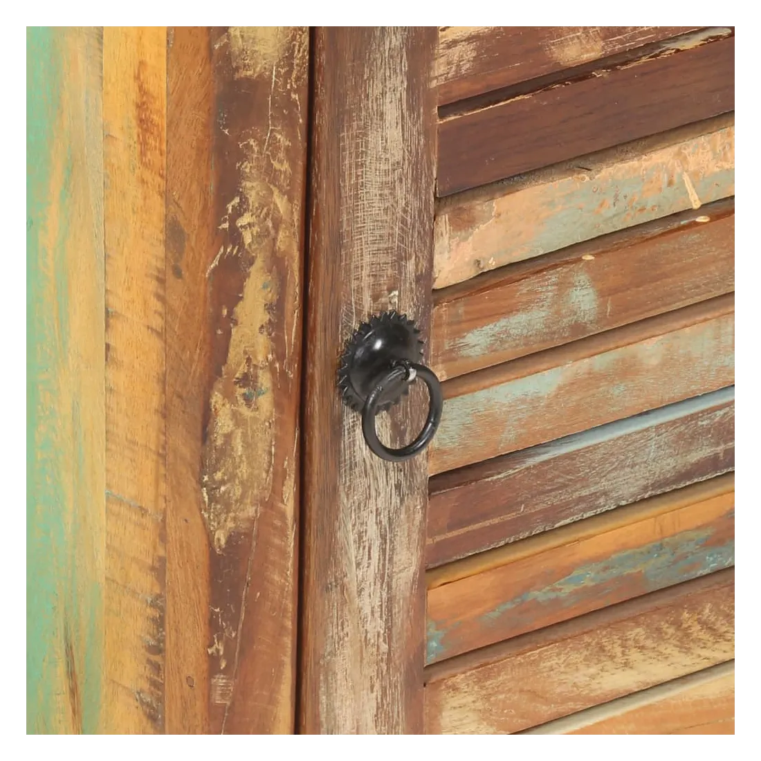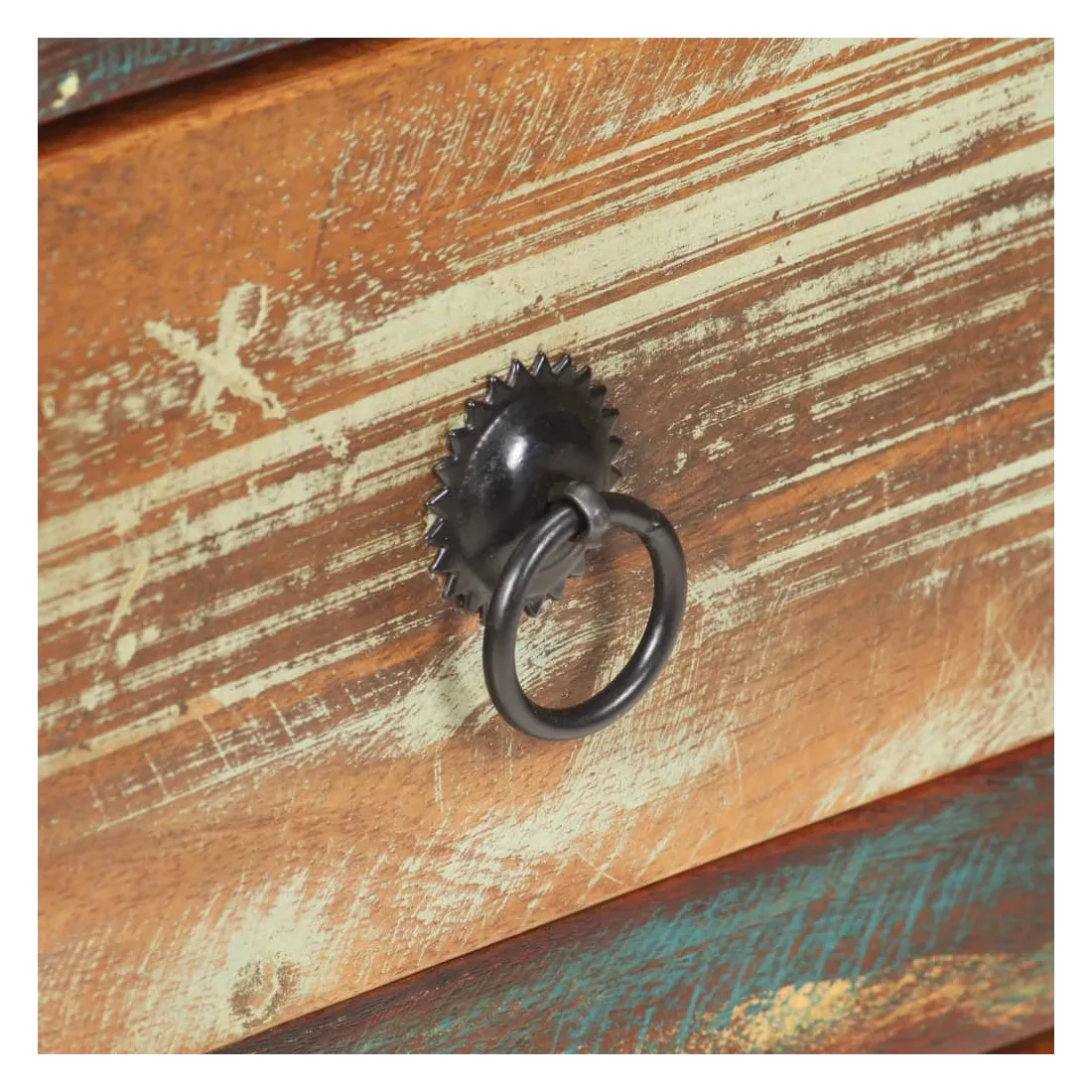 - Matériau : bois de récupération massif avec une finition de couleur mixte