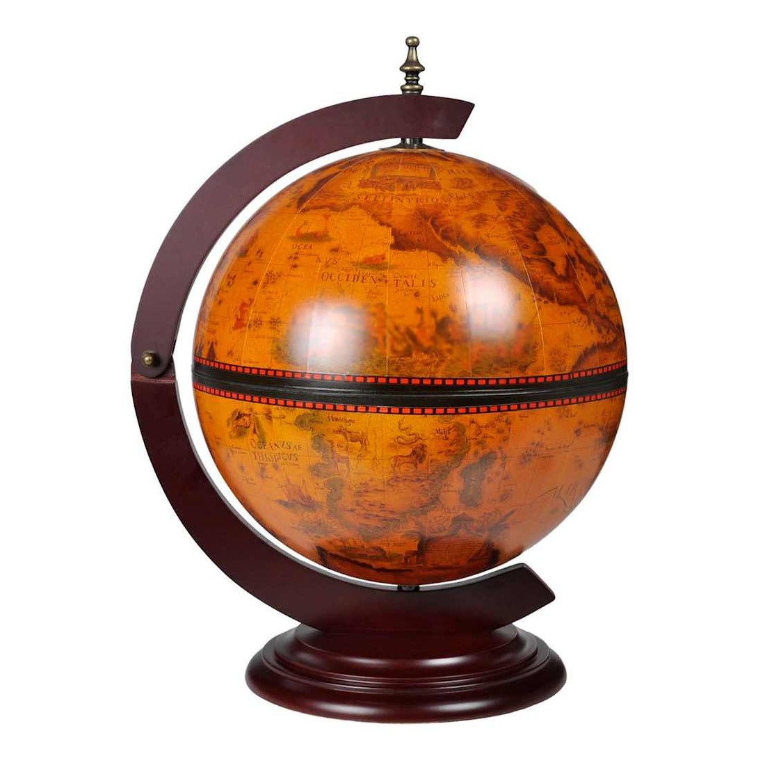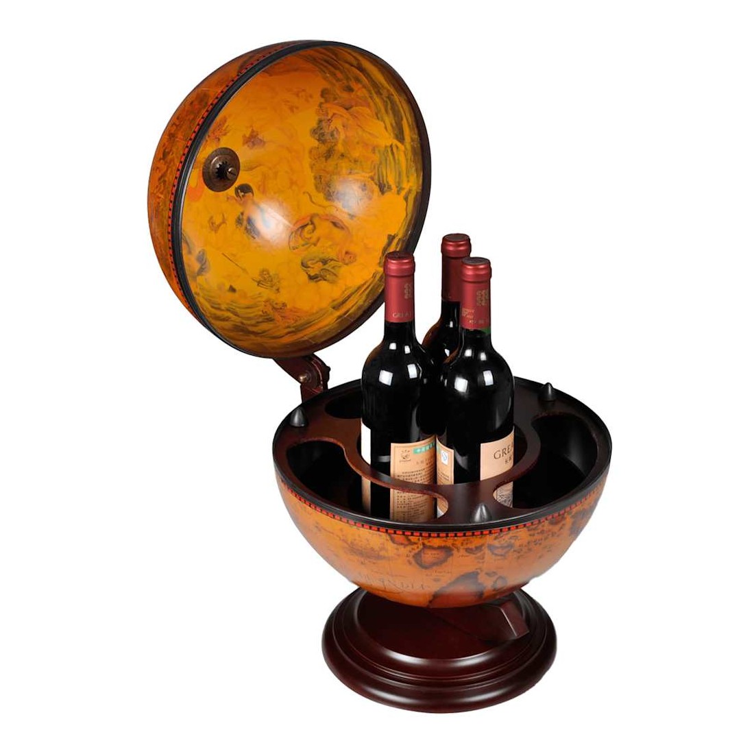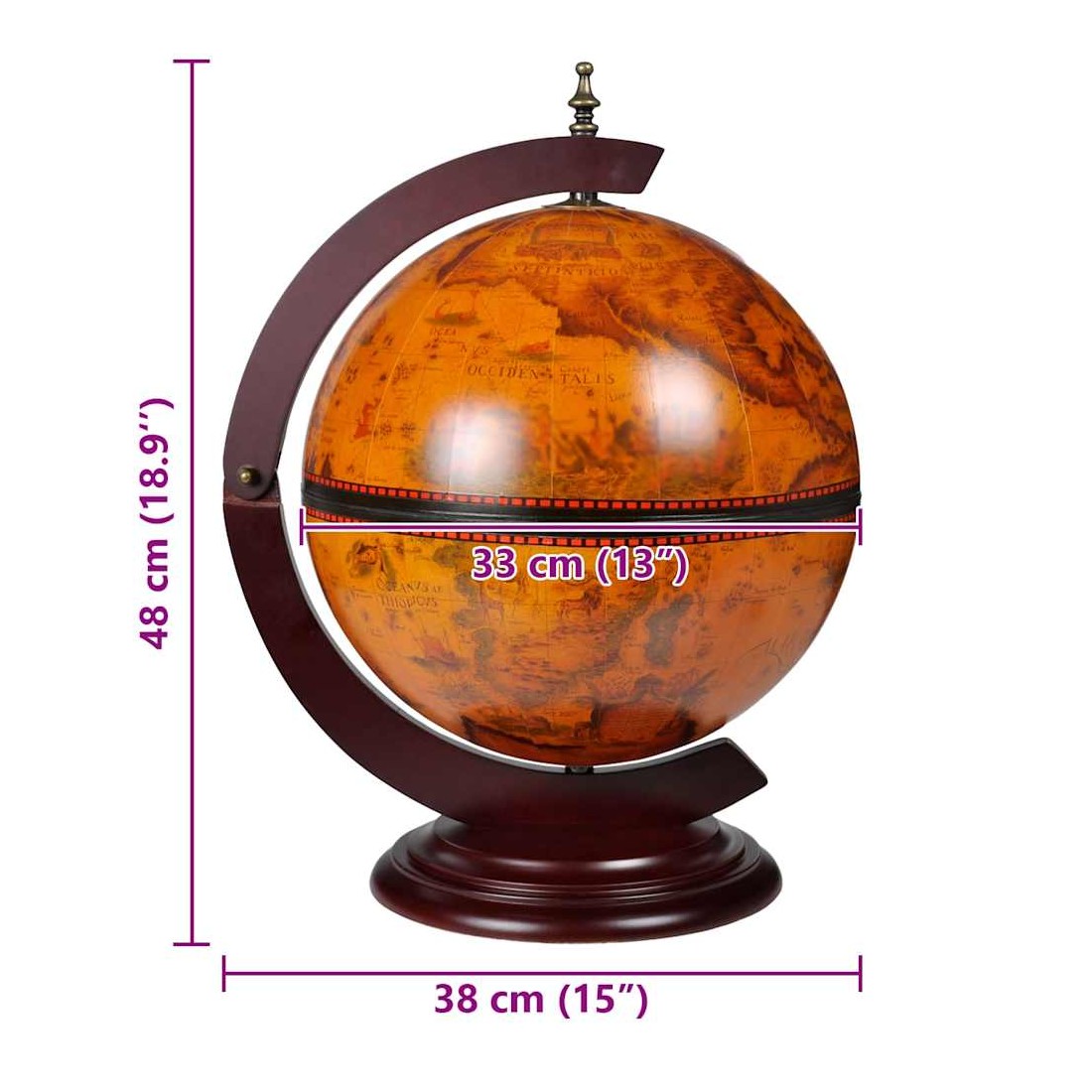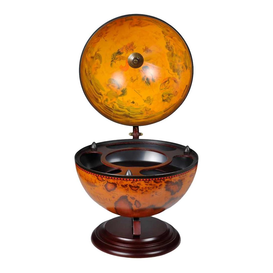 Le bar globe en bois s'ouvre pour révéler un grand bar tournant avec beaucoup d'espace pour le vin, les spiritueux, la boisson et les verres à pied, ainsi vous pouvez afficher votre vin et verres dans l'ordre dans l'espace caché tout en assurant l'accès facile. La surface extérieure du globe est recouverte de répliques de cartes nautiques du 16ème siècle, et les fresques de répliques antiques à l'intérieur, faisant du bar sous forme de globe une œuvre d'art et une jolie décoration pour la maison ou le bureau. Ce bar sous forme de globe est sans aucun doute une combinaison parfaite de fonctions de stockage et esthétiques.