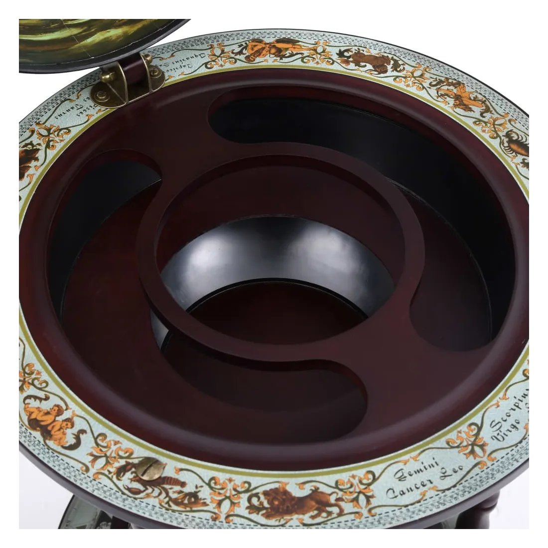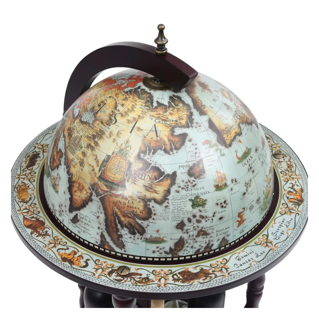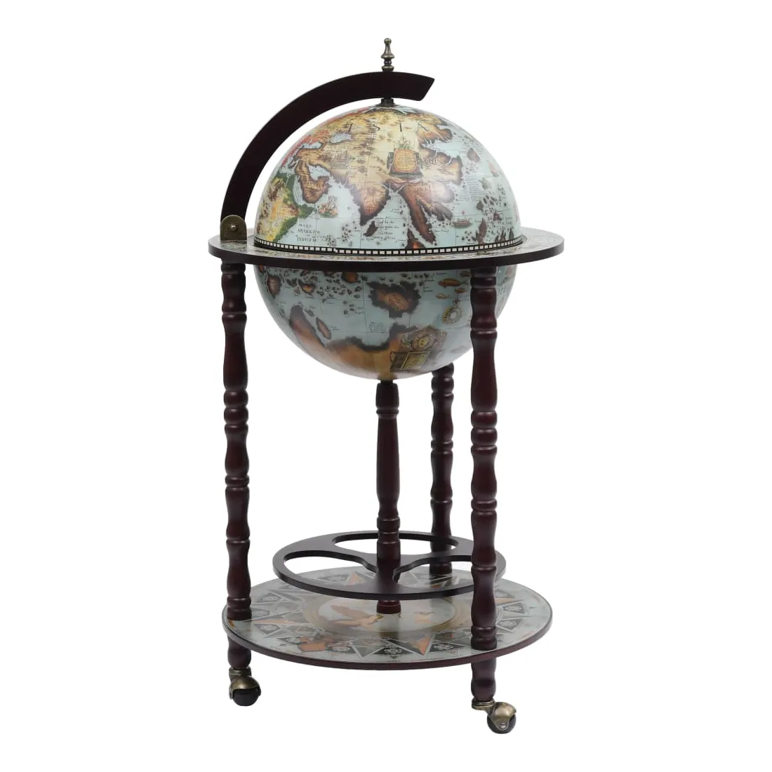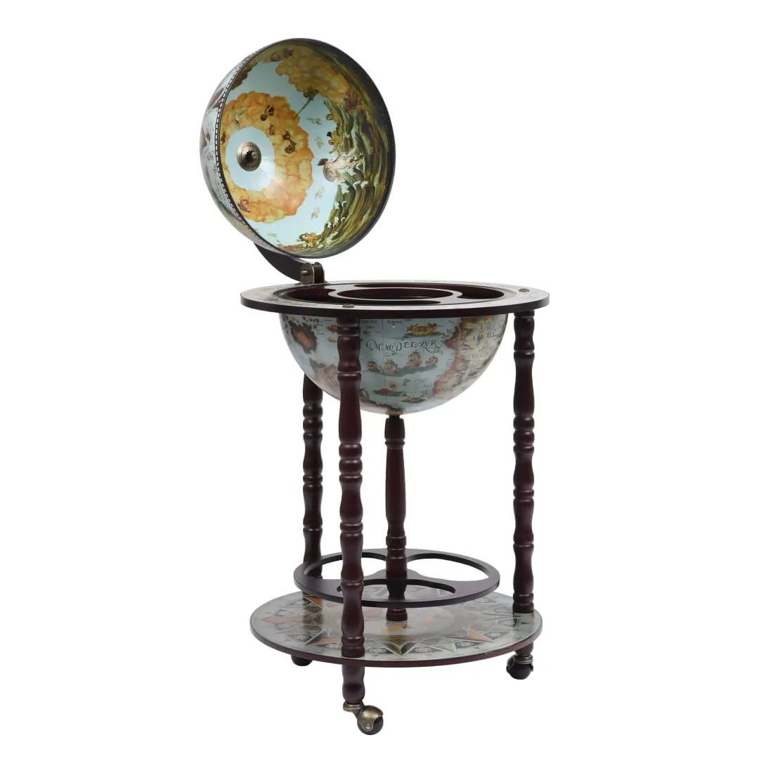 Cet élégant globe de bar est idéal pour ranger plusieurs bouteilles et verres. Fait de bois solide, il peut être utilisé à la maison, au bureau ou partout où vous souhaitez recevoir des invités de manière élégante. Ce bar sous forme de globe repose sur des roues, donc il est facile à déplacer. Il dispose d'une carte du monde antique. Avec un porte-bouteille et porte-verre, il est parfait pour contenir plusieurs bouteilles et verres. Veuillez noter que les bouteilles et les verres ne sont pas inclus.