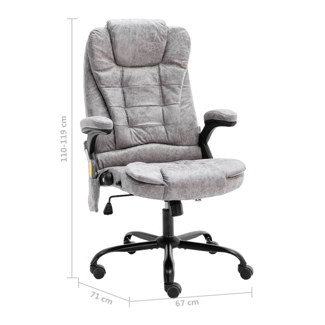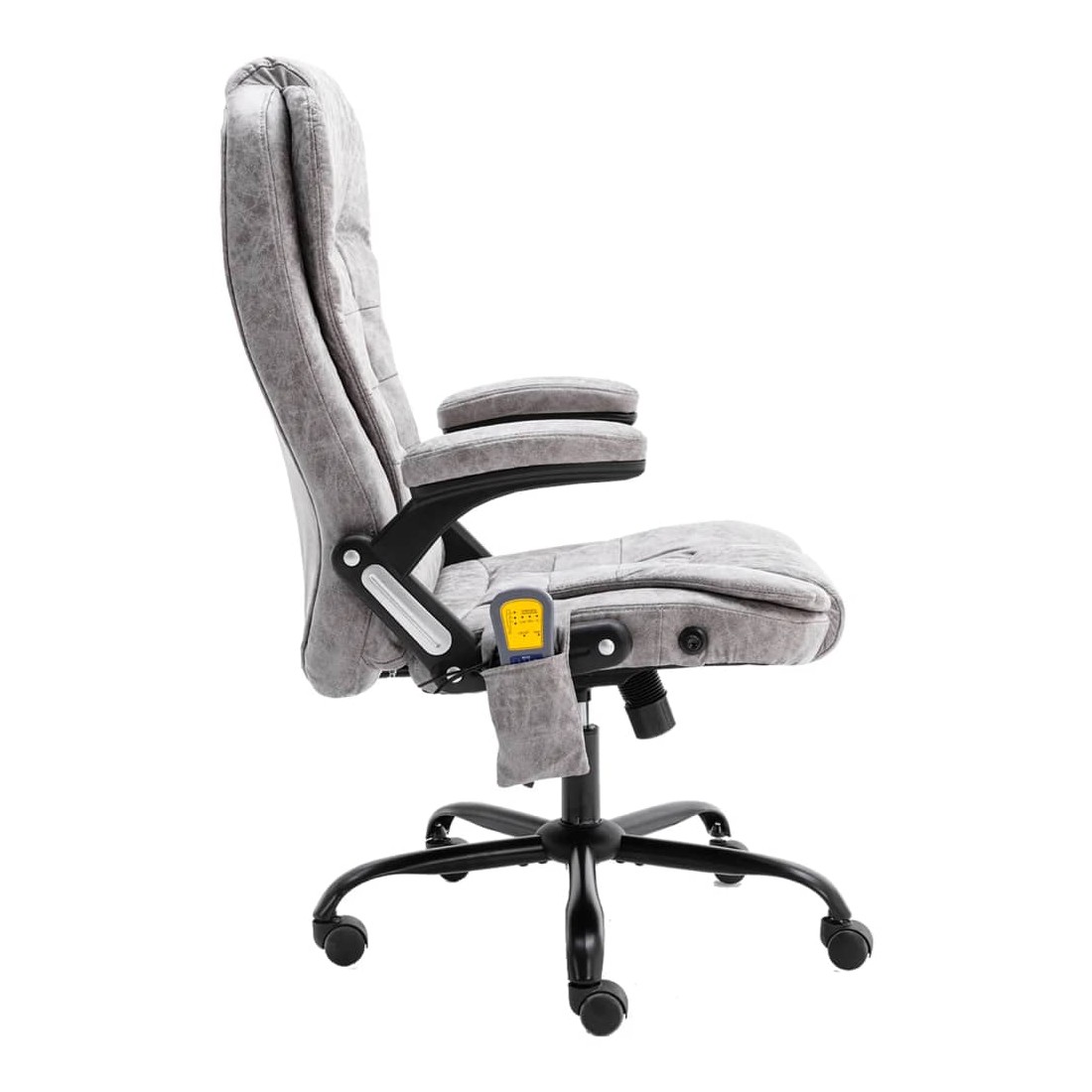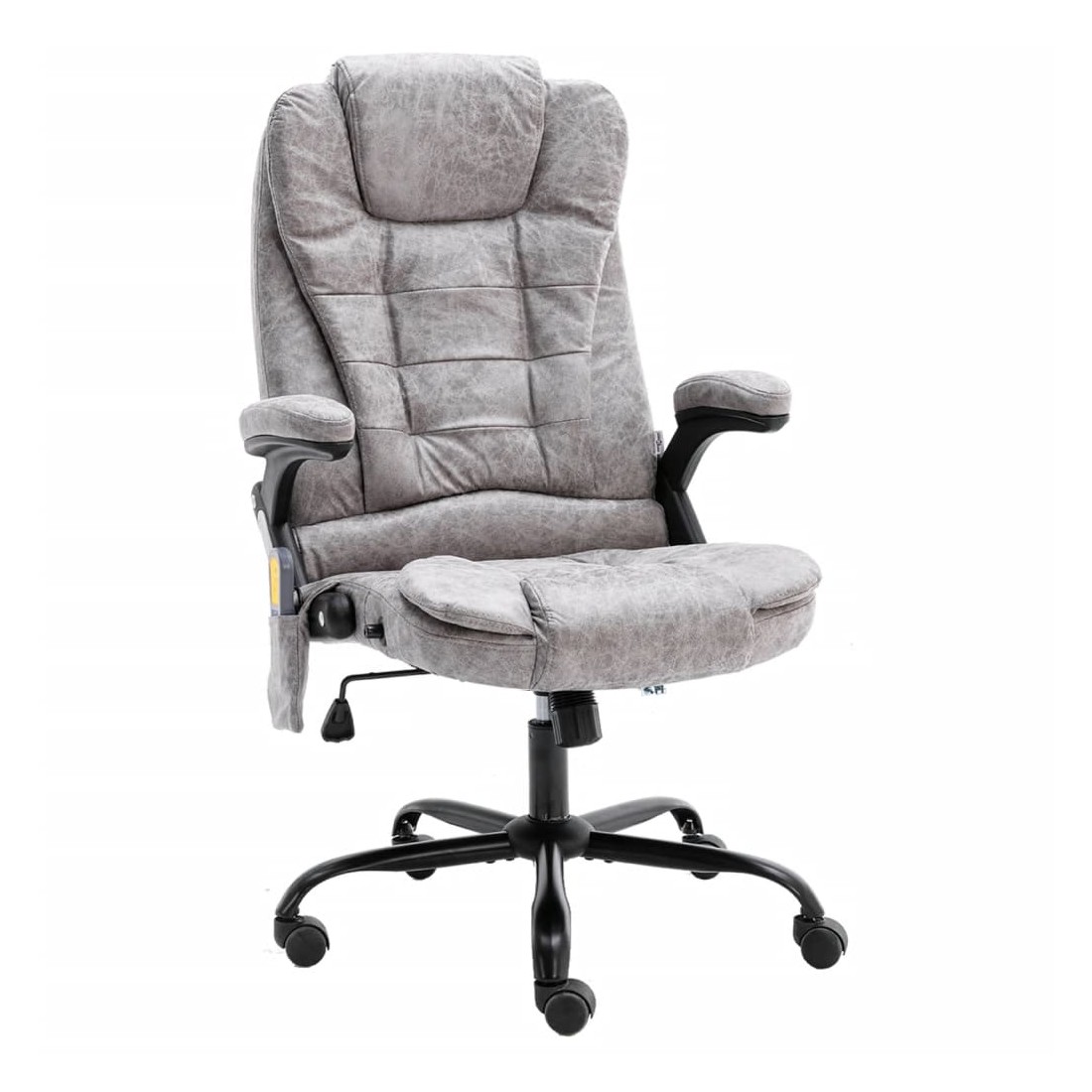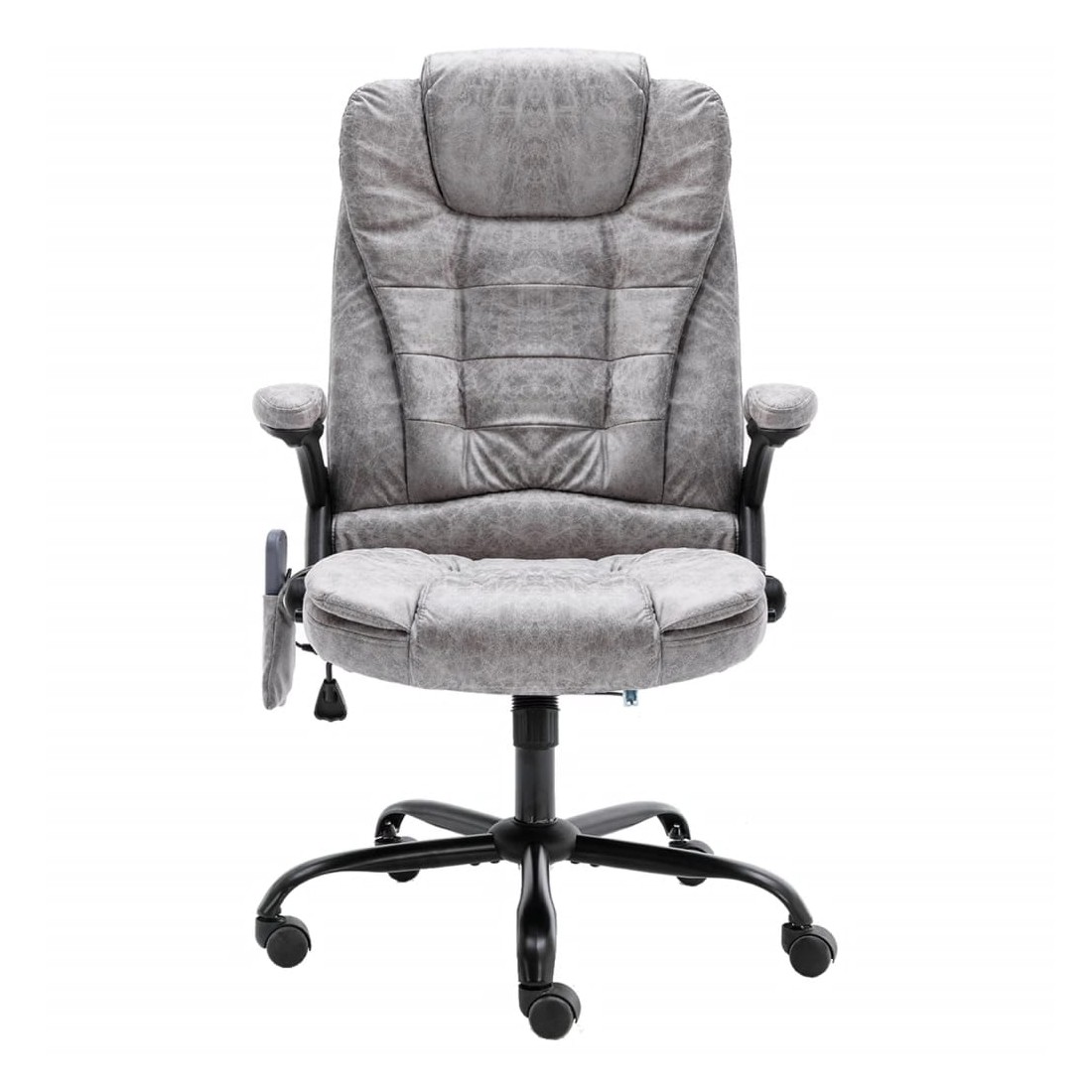 Avec sa fonction de massage et d'inclinaison, cette chaise de bureau constitue un excellent ajout à votre bureau. Il est conçu de manière ergonomique pour offrir le plus grand confort pendant votre journée de travail. Il est doté d'un dossier haut, d'accoudoirs incurvés et d'un siège bien rembourré, offrant du confort pour les longues sessions de travail. La conception réglable en hauteur vous permet de l'adapter à la hauteur du bureau et d'obtenir un confort prolongé et un alignement sain de la colonne vertébrale. Ce fauteuil inclinable est équipé de roulettes en nylon, ce qui vous permet de le déplacer facilement. Cette chaise a 4 points de massage pour le dos et 2 points de massage pour le siège. Elle dispose également d'une fonction de chauffage pour votre taille. Remarque : ce produit est doté d'un connecteur USB, mais la source d'alimentation certifiée de USB 5V n'est pas incluse.