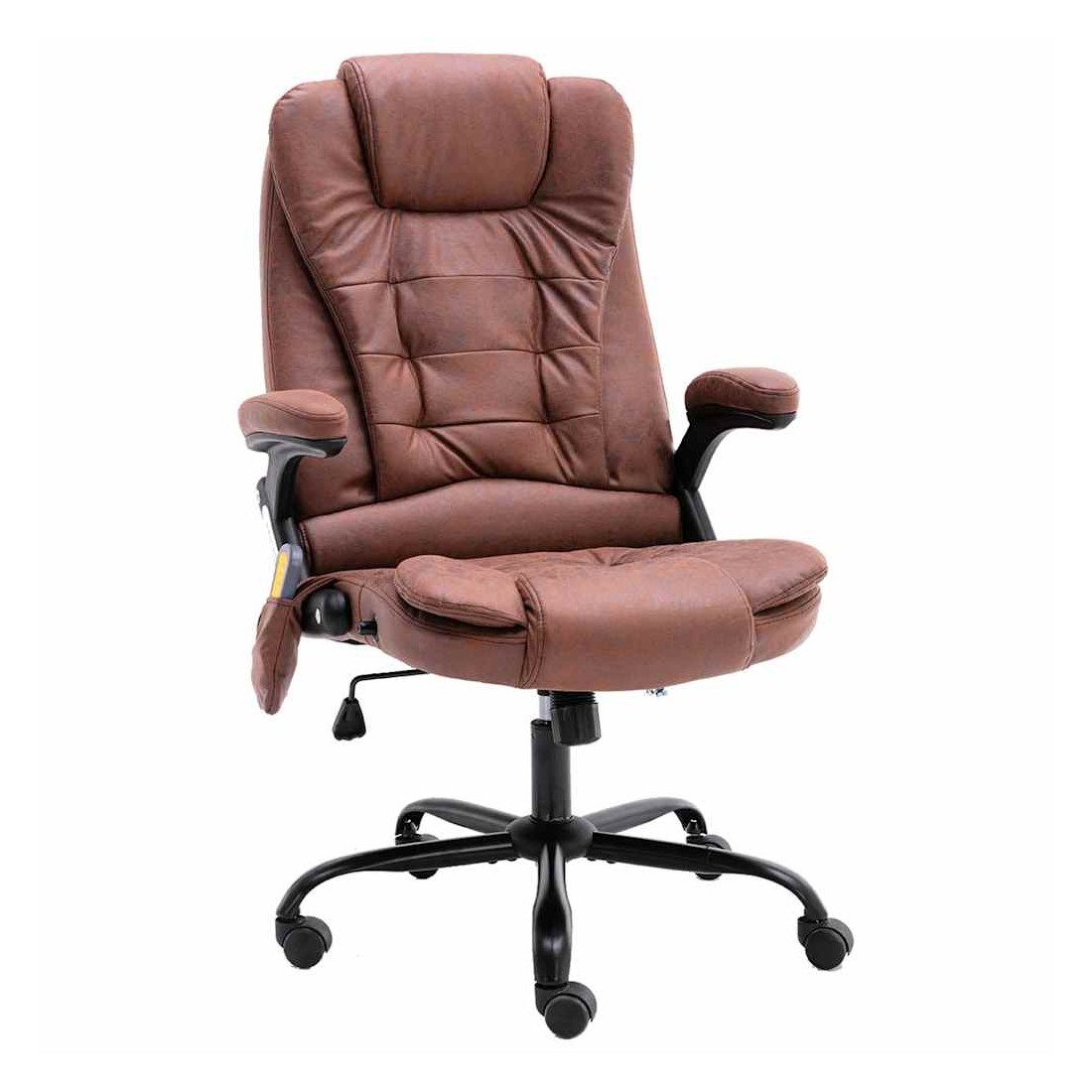 Avec sa fonction de massage et d'inclinaison, cette chaise de bureau constitue un excellent ajout à votre bureau. Il est conçu de manière ergonomique pour offrir le plus grand confort pendant votre journée de travail. Il est doté d'un dossier haut, d'accoudoirs incurvés et d'un siège bien rembourré, offrant du confort pour les longues sessions de travail. La conception réglable en hauteur vous permet de l'adapter à la hauteur du bureau et d'obtenir un confort prolongé et un alignement sain de la colonne vertébrale. Ce fauteuil inclinable est équipé de roulettes en nylon, ce qui vous permet de le déplacer facilement. Cette chaise a 4 points de massage pour le dos et 2 points de massage pour le siège. Elle dispose également d'une fonction de chauffage pour votre taille. Remarque : ce produit est doté d'un connecteur USB, mais la source d'alimentation certifiée de USB 5V n'est pas incluse.