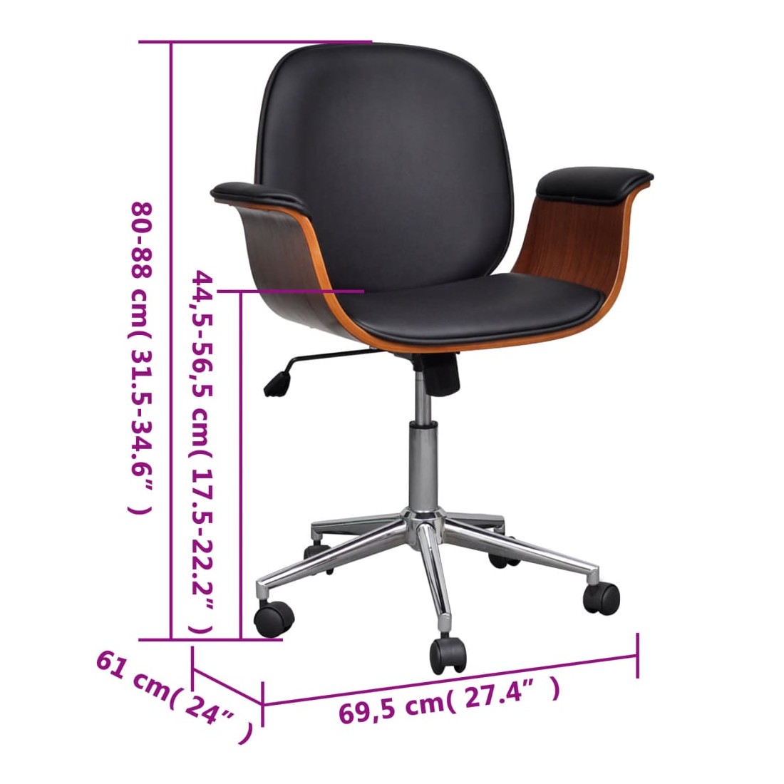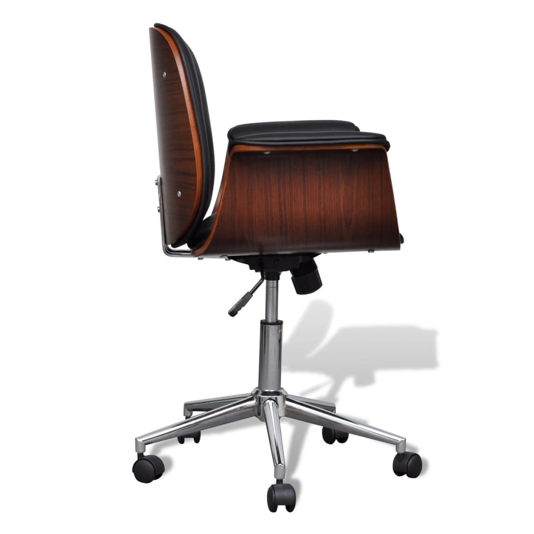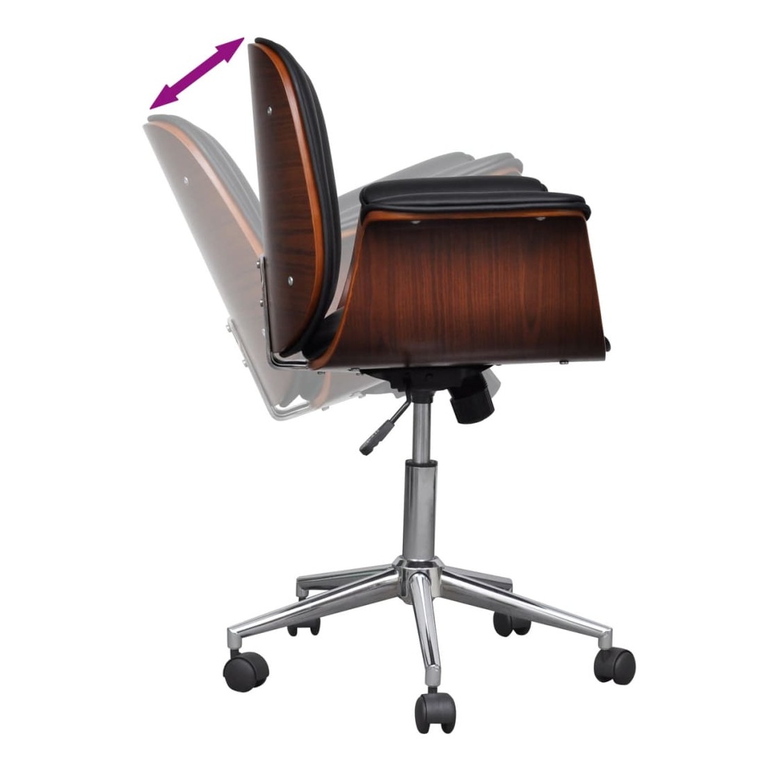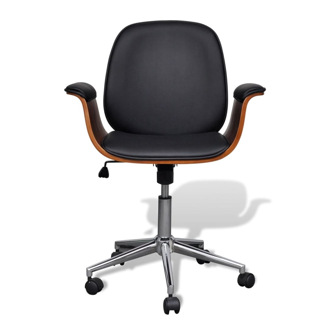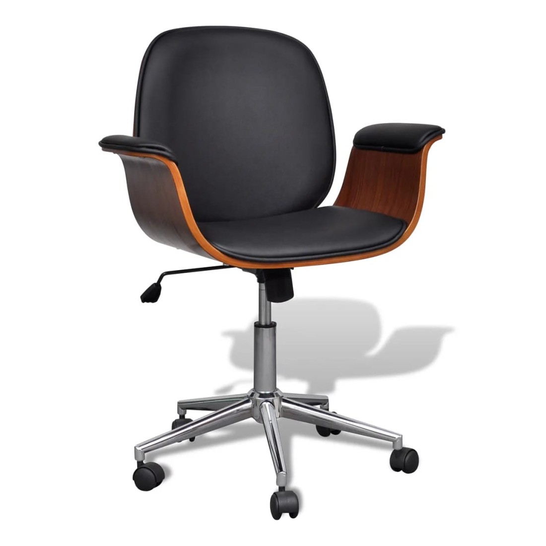 Ce fauteuil, au design soigné mais intemporel, est parfait pour tout salon, dortoir, salon ou bureau.Le fauteuil, recouvert de similicuir de haute qualité, est bien rembourré pour offrir un confort optimal. Le cadre en bois courbé ajoute une beauté et un style uniques. Le dossier inclinable offre un soutien au dos et aide à minimiser la pression exercée sur votre colonne vertébrale. Les 5 roulettes équipées sont conçues pour un transport facile.Grâce au mécanisme de levage à gaz, ce fauteuil peut être réglé en hauteur et constitue un supplément parfait à toute maison ou à tout bureau.