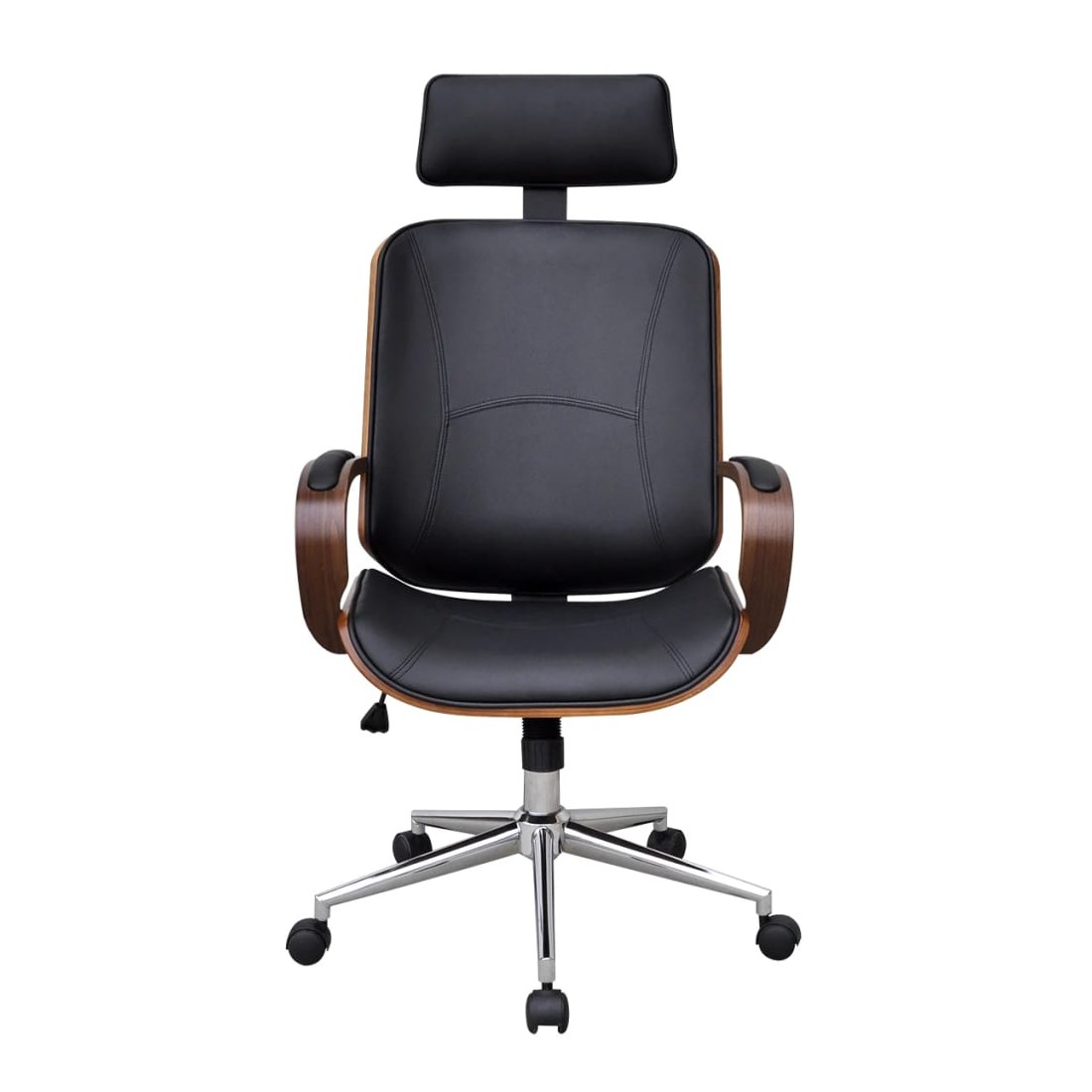 Cette chaise de bureau, au design élégant et contemporain, ajoutera une touche de classe à n'importe quel salon, dortoir, salon ou bureau. Le siège et le dossier sont conçus de manière ergonomique et recouverts de cuir artificiel doux et de haute qualité et bien rembourrés, ce qui rend la chaise très confortable. Le cadre en bois courbé ajoute à sa beauté et à son style uniques. Le dossier de conception ergonomique soutiendra votre dos pour aider à minimiser la pression sur votre colonne vertébrale, et l'appui-tête ajoute encore au confort d'assise déjà impressionnant. Elle est équipée de 5 roulettes pour que vous puissiez la déplacer facilement. Grâce au mécanisme de levage à gaz, ce fauteuil est réglable en hauteur. Il sera un supplément élégant à n'importe quelle maison ou bureau. L'assemblage est vraiment facile. La livraison comprend 1 chaise de bureau.