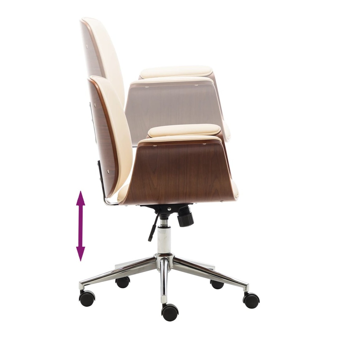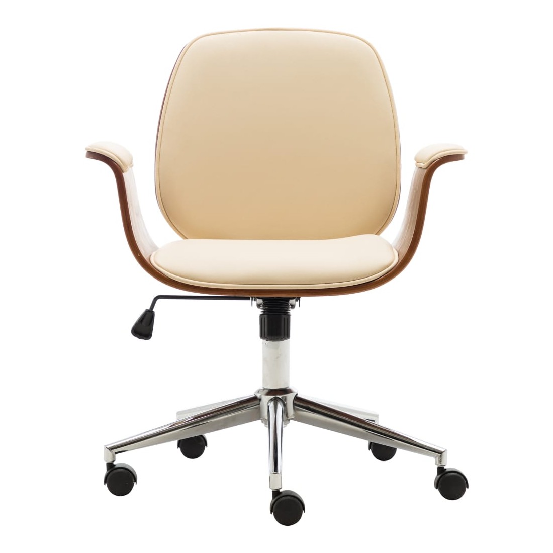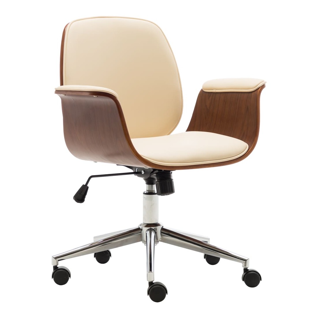 Avec un design soigné mais intemporel, cette chaise de bureau est parfaite pour n'importe quel salon, dortoir ou bureau. Le fauteuil est recouvert de similicuir facile à nettoyer pour un confort optimal. Le cadre en bois courbé ajoute une beauté et un style uniques. Les 5 roulettes équipées sont conçues pour un déplacement facile. De plus, grâce au mécanisme de levage à gaz, ce fauteuil peut être réglé en hauteur et constitue un supplément parfait à toute maison ou à tout bureau.