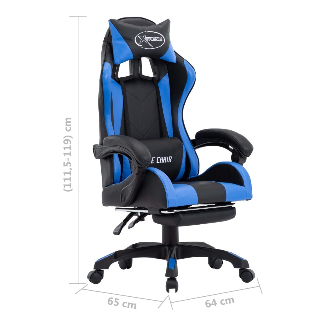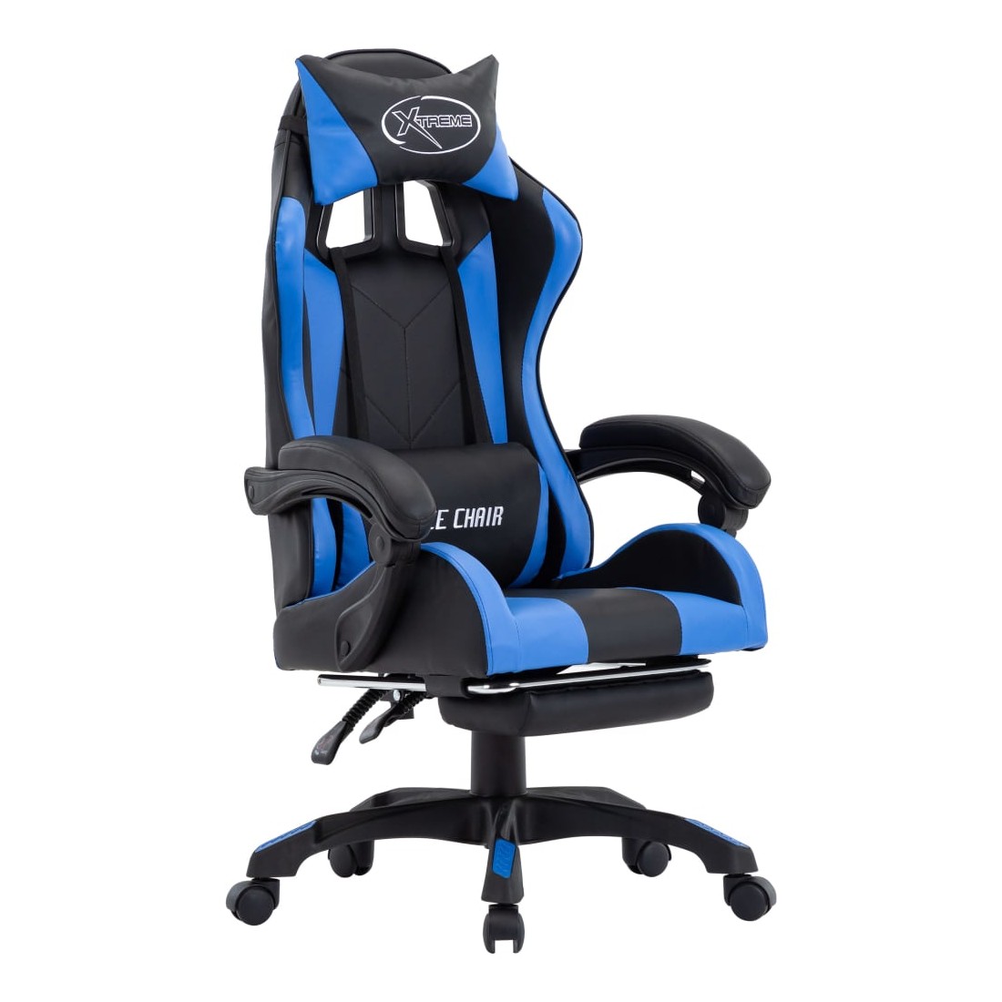 Fauteuil de jeux vidéo avec repose-pied Bleu et noir Similicuir