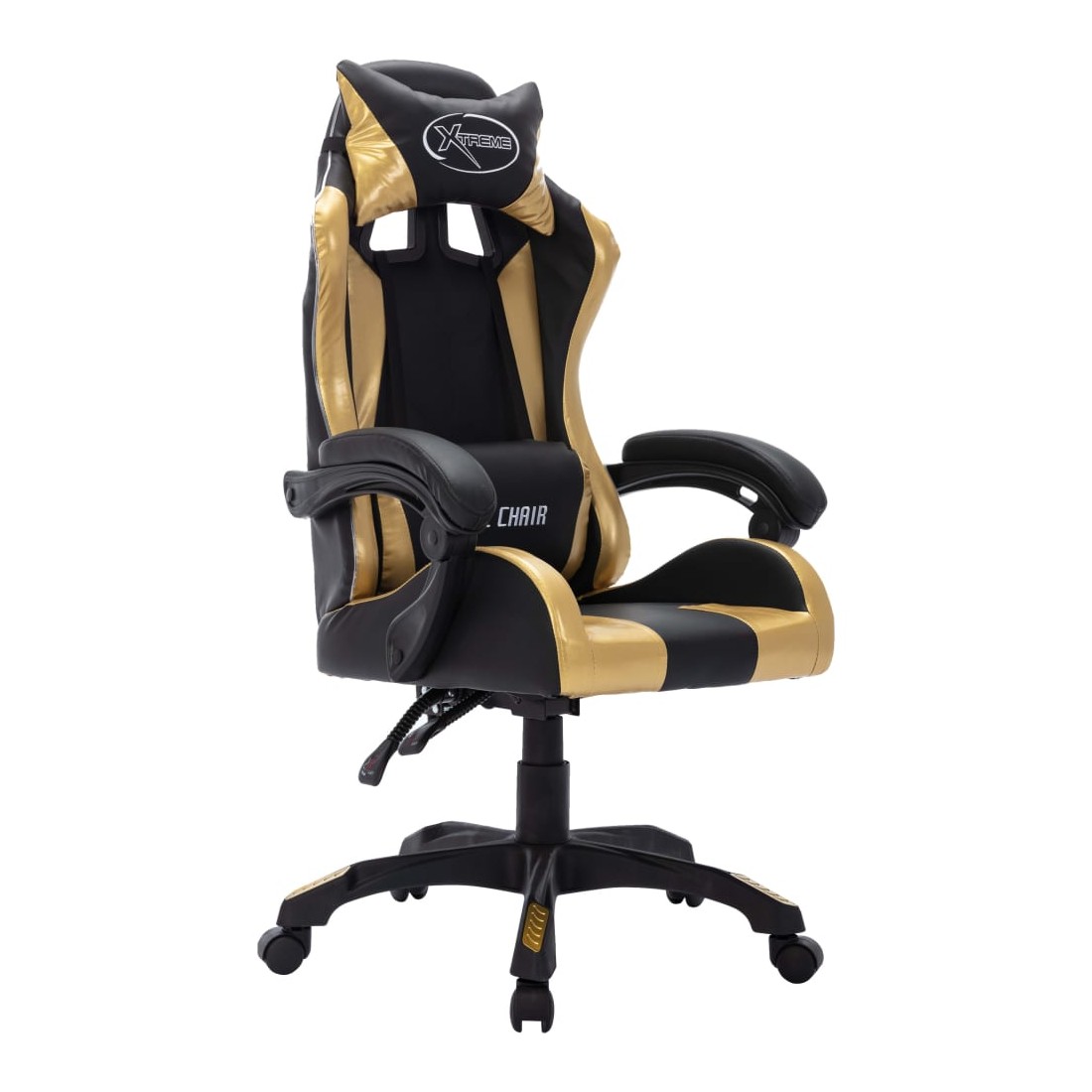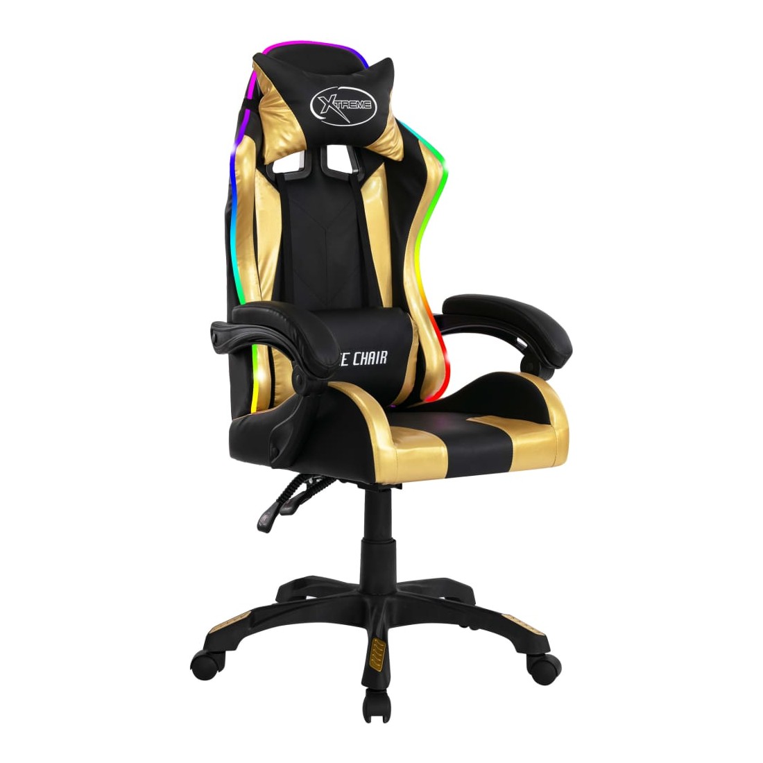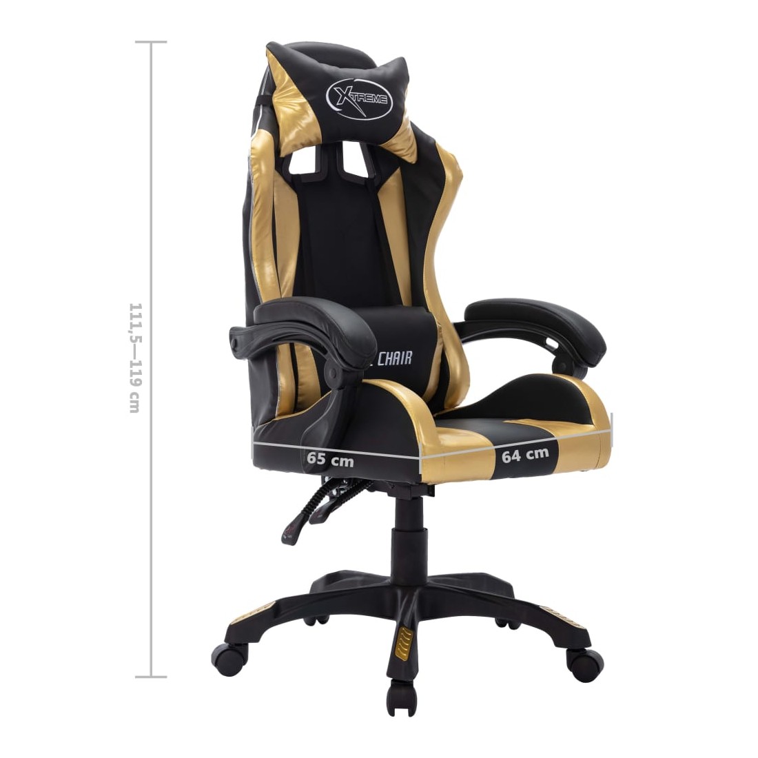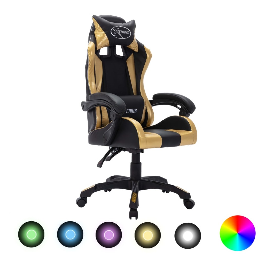 Fauteuil de jeux vidéo avec LED RVB Doré et noir Similicuir