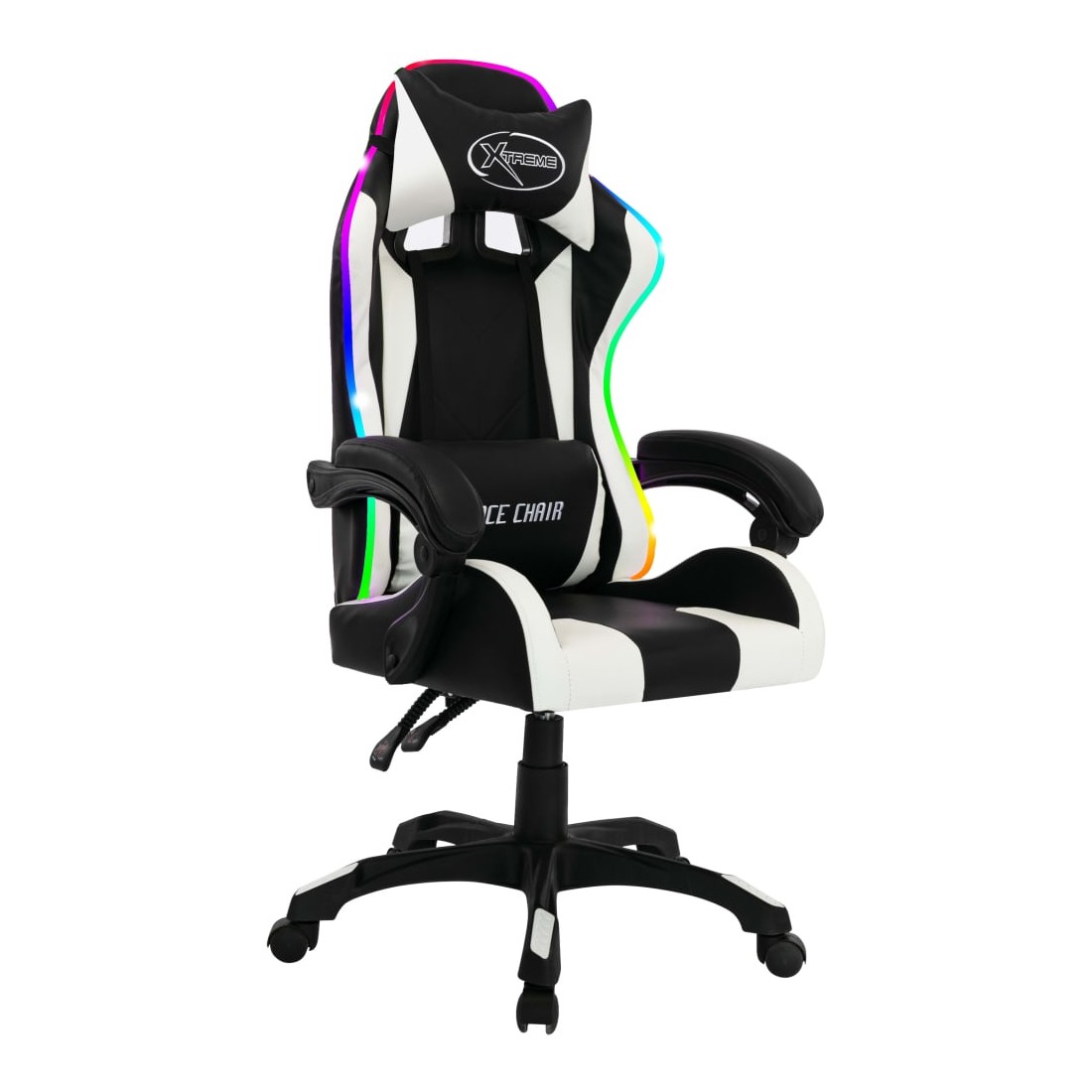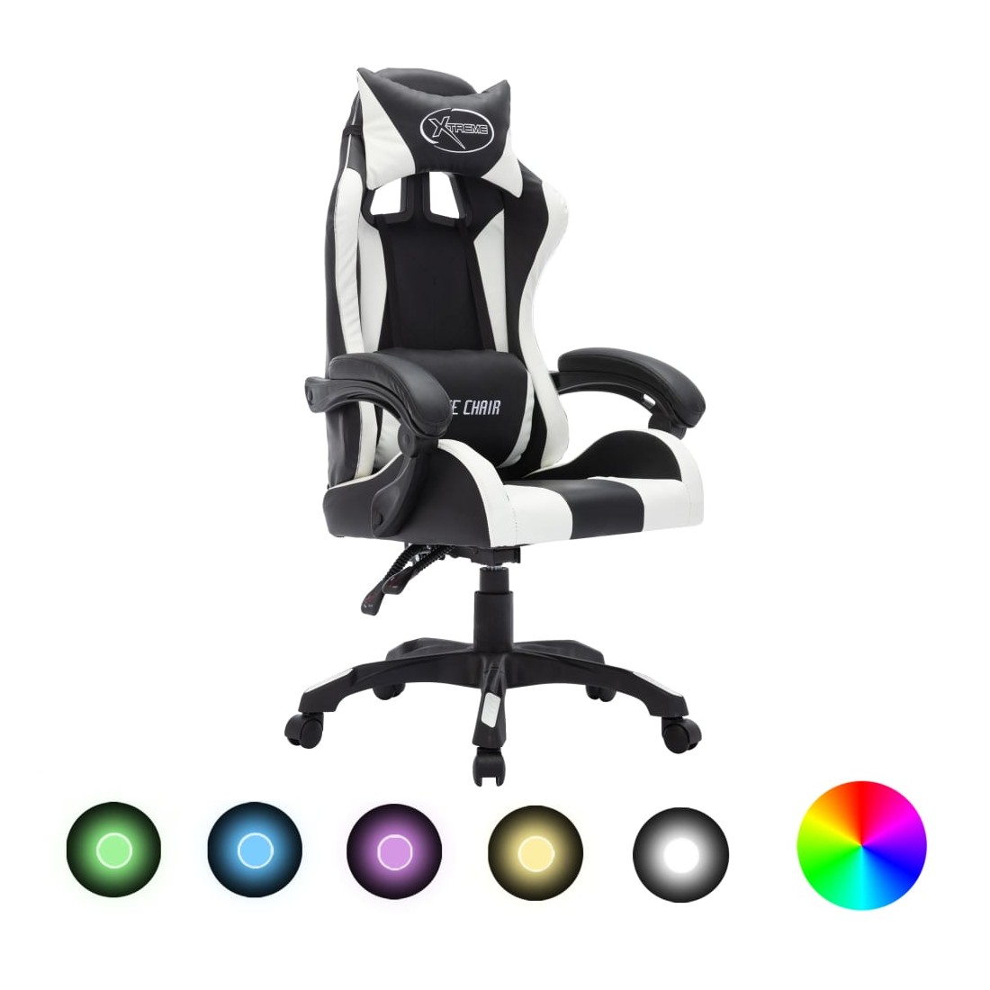 Ce fauteuil de jeux vidéo distinctif et de luxe offre un endroit extrêmement confortable pour le jeu ou le travail. Cette chaise de jeu vidéo est tapissée en similicuir, ce qui la rend facile à nettoyer. L’oreiller de tête et le coussin de taille bien rembourrés inclus offrent un confort supplémentaire pendant votre journée de travail. Avec le mécanisme de levage à gaz, cette chaise de bureau est réglable en hauteur. Elle est également réglable en position inclinable, donc si vous avez envie de faire une sieste, placez le dossier dans une position complètement inclinée. De plus, le pivotement sur 360 degrés et la conception à 5 roulettes facilitent son déplacement. Le bord du dossier est équipé de lumières LED, vous offrant une meilleure atmosphère de jeu. Vous pouvez facilement changer la couleur et le clignotement des lumières à l’aide d’une télécommande.