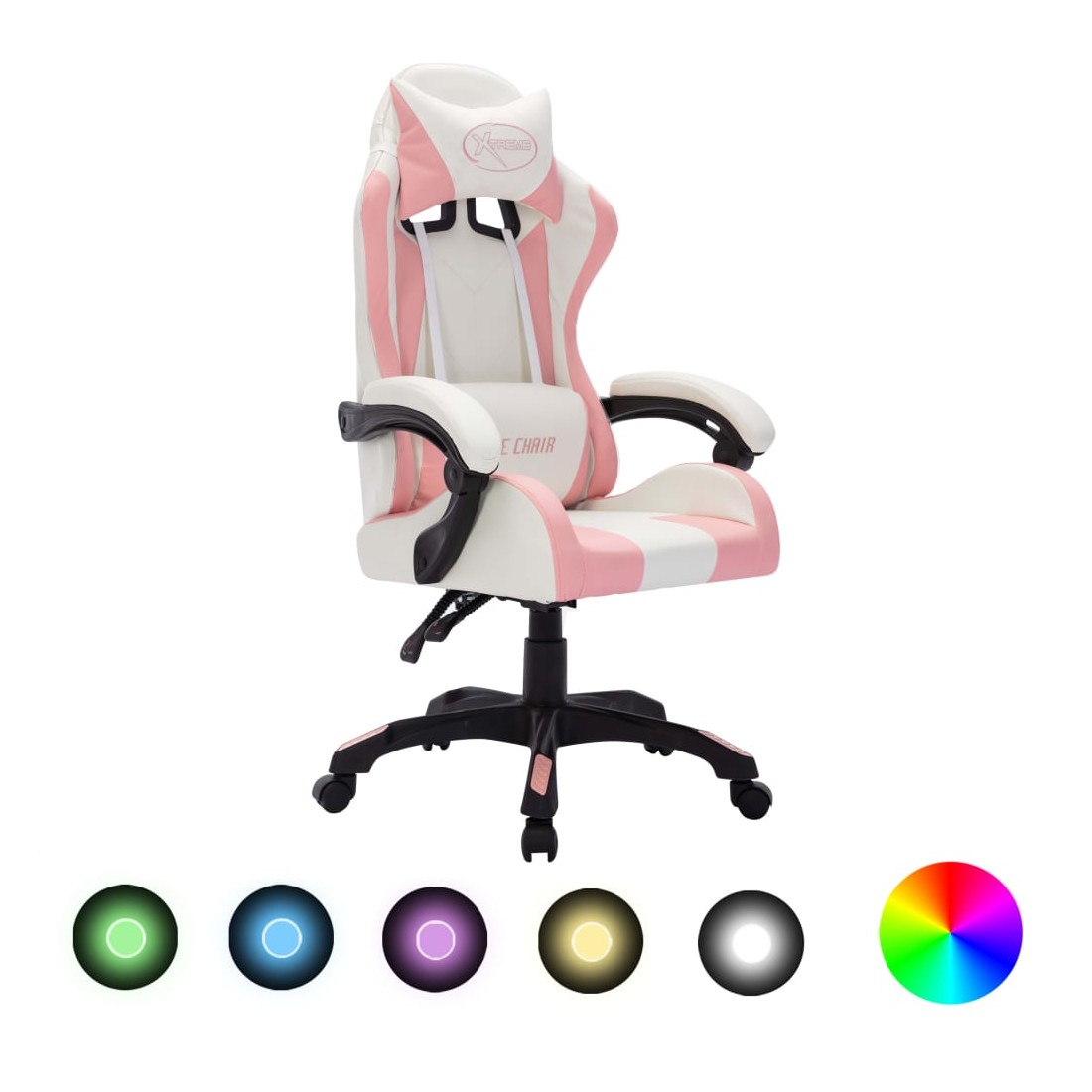 Ce fauteuil de jeux vidéo distinctif et de luxe offre un endroit extrêmement confortable pour le jeu ou le travail. Cette chaise de jeu vidéo est tapissée en similicuir, ce qui la rend facile à nettoyer. L’oreiller de tête et le coussin de taille bien rembourrés inclus offrent un confort supplémentaire pendant votre journée de travail. Avec le mécanisme de levage à gaz, cette chaise de bureau est réglable en hauteur. Elle est également réglable en position inclinable, donc si vous avez envie de faire une sieste, placez le dossier dans une position complètement inclinée. De plus, le pivotement sur 360 degrés et la conception à 5 roulettes facilitent son déplacement. Le bord du dossier est équipé de lumières LED, vous offrant une meilleure atmosphère de jeu. Vous pouvez facilement changer la couleur et le clignotement des lumières à l’aide d’une télécommande.