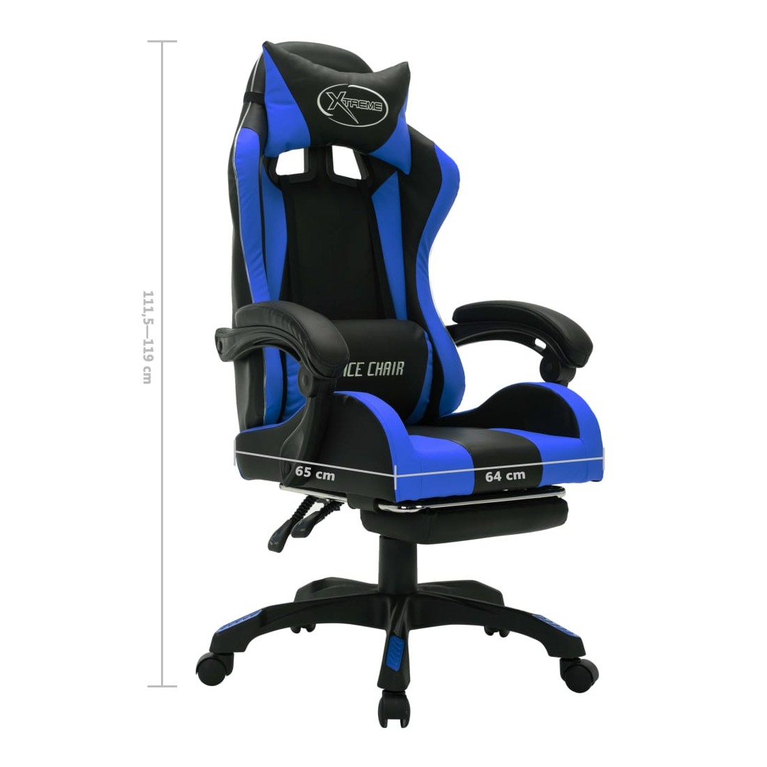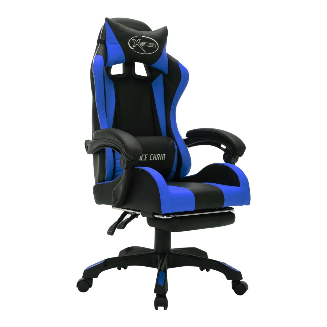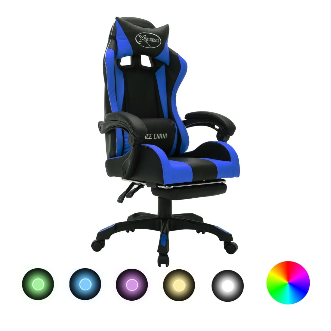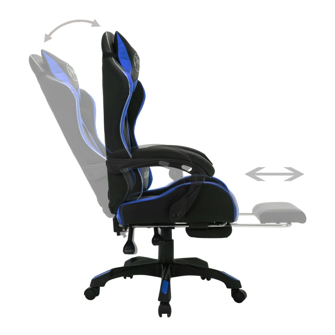 Ce fauteuil de jeux vidéo distinctif et de luxe offre un endroit extrêmement confortable pour le jeu ou le travail. Cette chaise de jeu est recouverte de similicuir, ce qui la rend facile à nettoyer. La chaise inclinable a un repose-pied rétractable qui peut être rangé sous le siège lorsqu'il n'est pas utilisé. Le coussin de tête et le coussin de taille bien rembourrés fournis offrent un confort supplémentaire pendant votre journée de travail bien remplie. Avec le mécanisme de vérin à gaz, cette chaise de bureau est réglable en hauteur. Elle est également réglable en position inclinée, donc si vous avez envie de faire une sieste, placez simplement le dossier en position entièrement inclinée. De plus, le pivotement à 360 degrés et la conception à 5 roulettes la rendent facile à déplacer. Le bord du dossier est équipé de lumières LED, vous offrant une meilleure ambiance de jeu. Vous pouvez facilement changer la couleur et les modes de clignotement des lumières grâce à une télécommande.