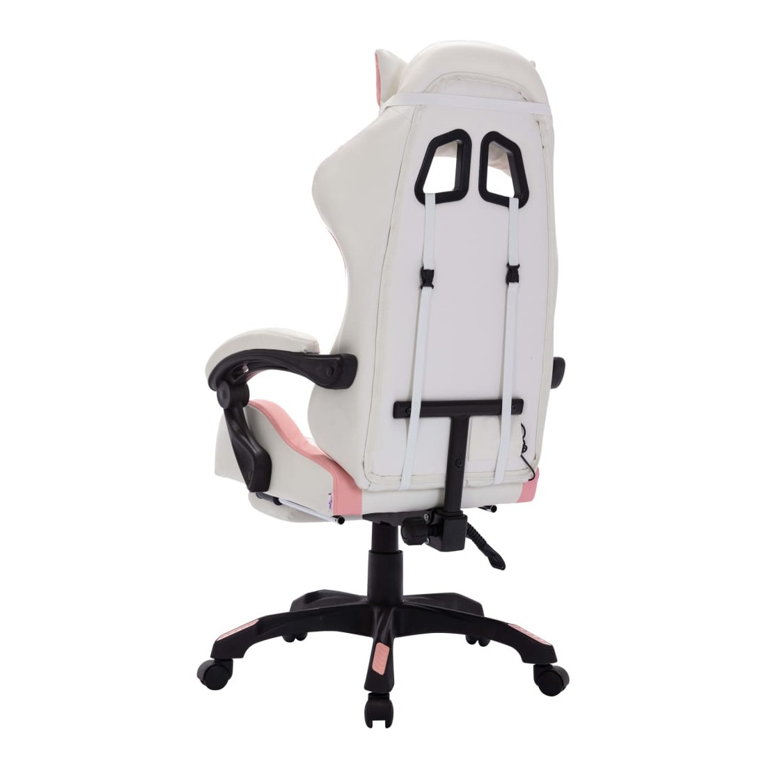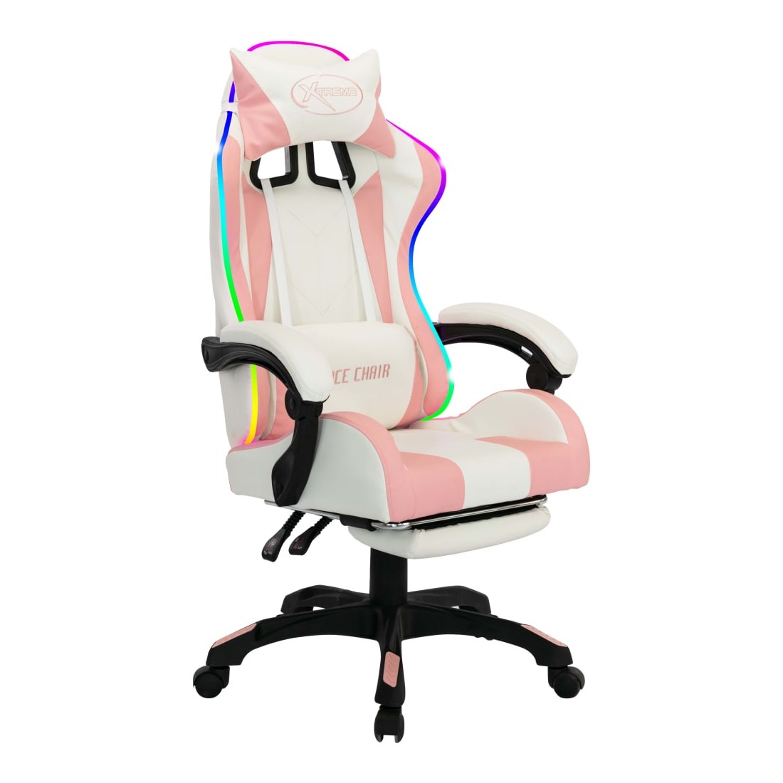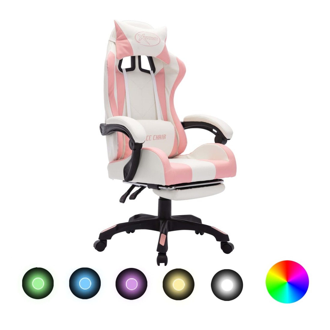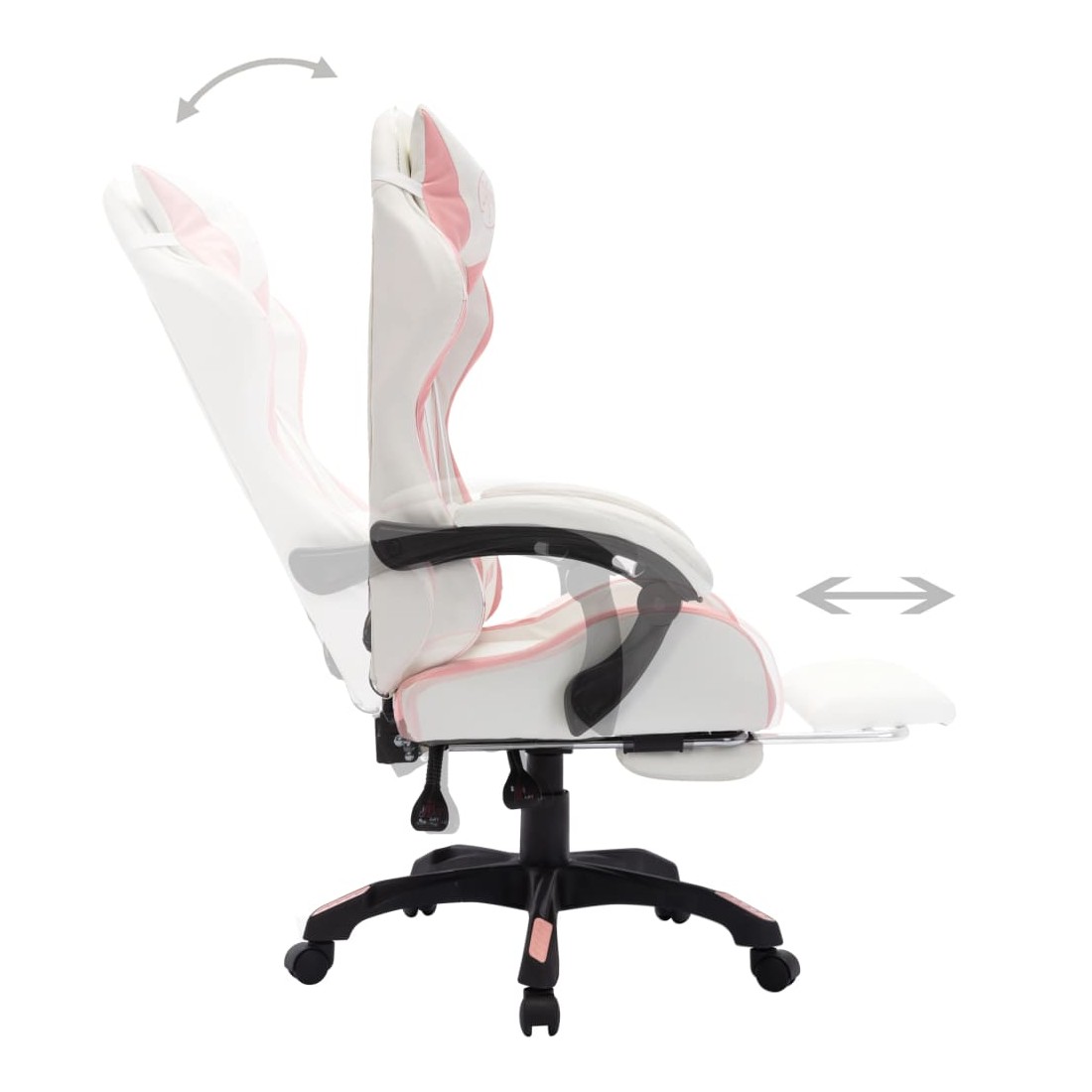 Ce fauteuil de jeux vidéo distinctif et de luxe offre un endroit extrêmement confortable pour le jeu ou le travail. Cette chaise de jeu est recouverte de similicuir, ce qui la rend facile à nettoyer. La chaise inclinable a un repose-pied rétractable qui peut être rangé sous le siège lorsqu'il n'est pas utilisé. Le coussin de tête et le coussin de taille bien rembourrés fournis offrent un confort supplémentaire pendant votre journée de travail bien remplie. Avec le mécanisme de vérin à gaz, cette chaise de bureau est réglable en hauteur. Elle est également réglable en position inclinée, donc si vous avez envie de faire une sieste, placez simplement le dossier en position entièrement inclinée. De plus, le pivotement à 360 degrés et la conception à 5 roulettes la rendent facile à déplacer. Le bord du dossier est équipé de lumières LED, vous offrant une meilleure ambiance de jeu. Vous pouvez facilement changer la couleur et les modes de clignotement des lumières grâce à une télécommande.