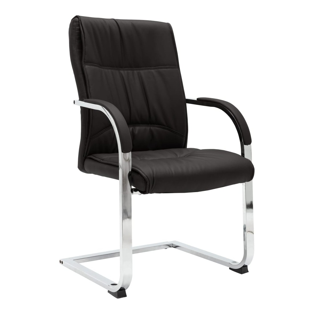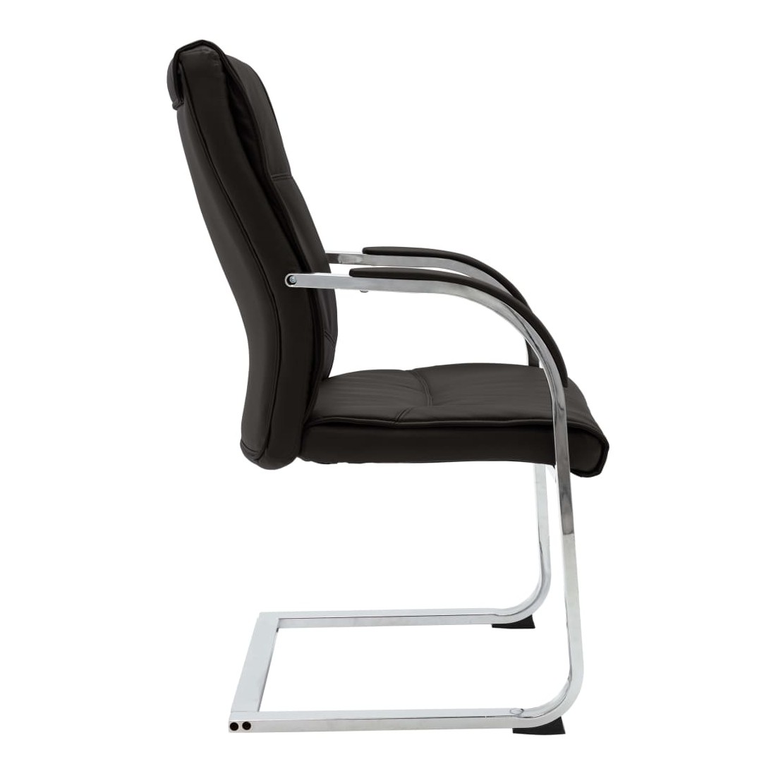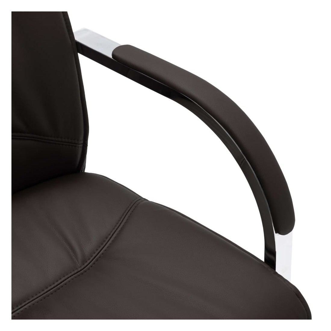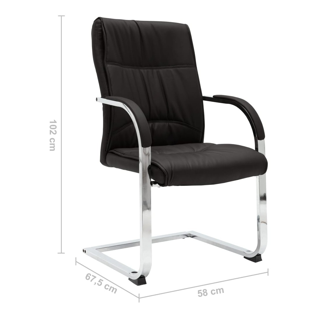 Cette chaise de bureau cantilever, au design contemporain, est une pièce unique, ajoutant un peu de confort à votre journée de travail. Cette chaise de bureau avec accoudoirs présente un dossier ergonomique, vous libérant des douleurs dorsales pendant les heures de travail. Le siège rembourré offre un confort d’assise tout au long de la journée. L’assise et le dossier sont faits de similicuir de qualité pour des années d’utilisation. De plus, les pieds de chaise en fer chromé robuste avec un design contemporain offrent une grande stabilité.
