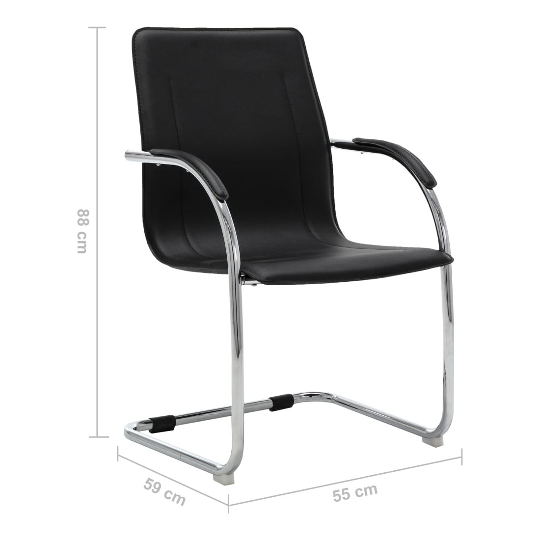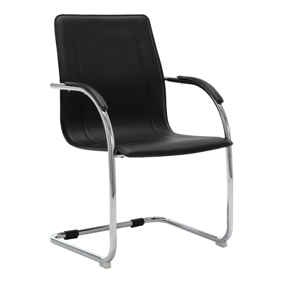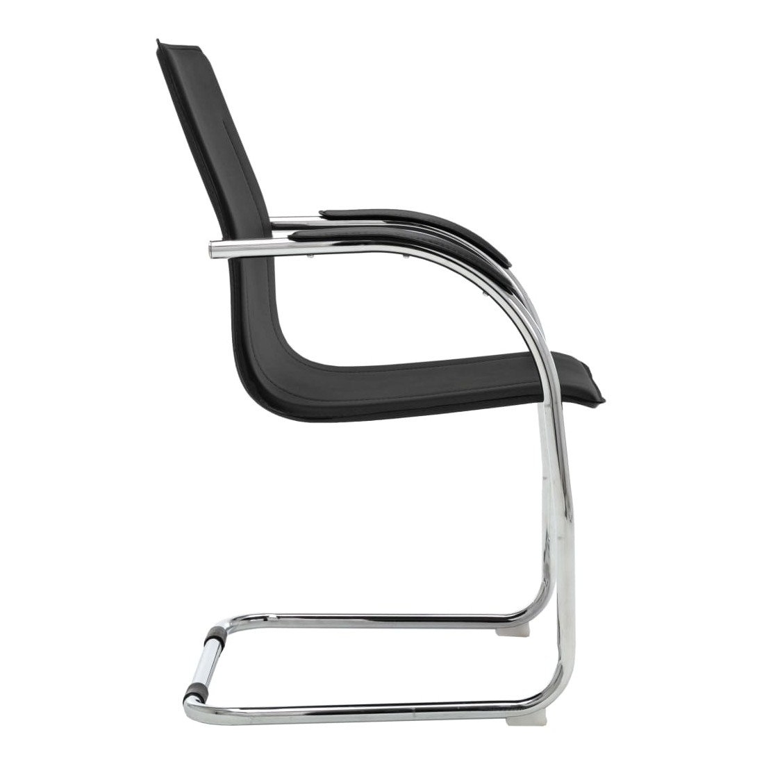 Cette chaise de bureau cantilever, au design contemporain, est une pièce unique, ajoutant un peu de confort à votre journée de travail. Cette chaise de bureau avec accoudoirs présente un dossier ergonomique, vous libérant des douleurs dorsales pendant les heures de travail. Le siège rembourré offre un confort d’assise tout au long de la journée. L’assise et le dossier sont faits de similicuir de qualité pour des années d’utilisation. De plus, les pieds de chaise en fer chromé robuste avec un design contemporain offrent une grande stabilité.