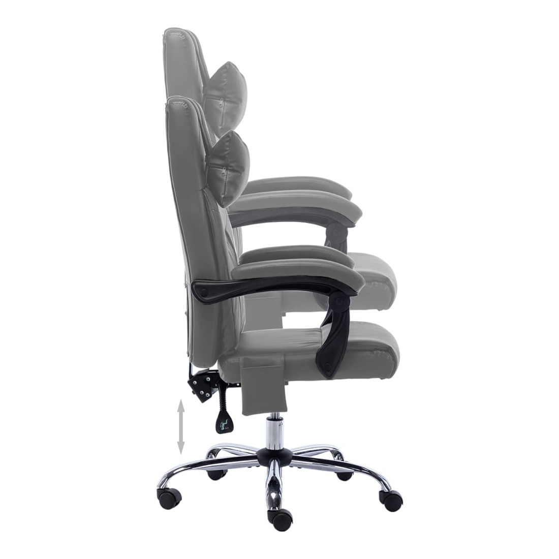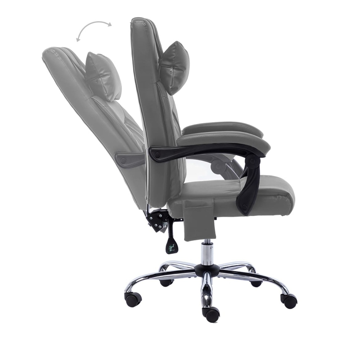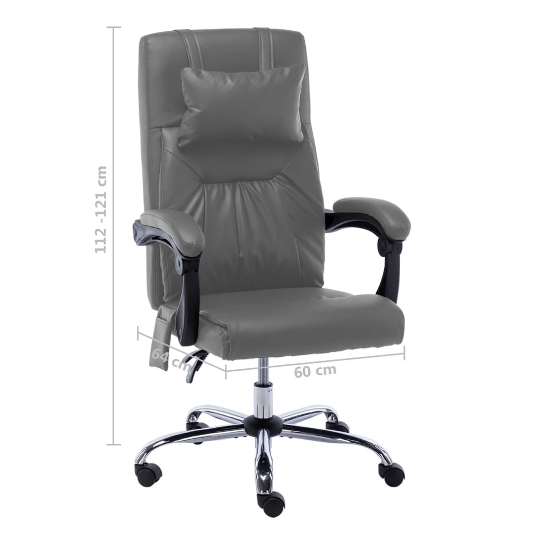 Avec une fonction de massage et d'inclinaison, ce fauteuil de bureau constitue un excellent supplément à votre bureau. Il est conçu de manière ergonomique pour offrir le plus grand confort pendant votre journée de travail chargée. Il est doté d'un dossier haut et d'un coussin pour la nuque avec massage en un point, d'accoudoirs incurvés et d'un siège bien rembourré, offrant un confort pour les longues sessions de travail. La conception réglable en hauteur vous permet d'adapter la hauteur du fauteuil de bureau et d'obtenir un confort accru et un alignement de la colonne vertébrale sain. Ce fauteuil inclinable est équipé de roulettes en nylon, vous pouvez donc le déplacer facilement. Il peut s'incliner de 95° à 135° pour vous offrir la position souhaitée pour vous détendre.