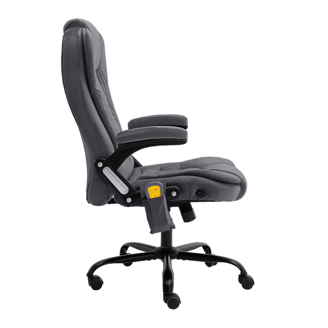 Avec sa fonction de massage et d'inclinaison, cette chaise de bureau constitue un excellent ajout à votre bureau. Il est conçu de manière ergonomique pour offrir le plus grand confort pendant votre journée de travail. Il est doté d'un dossier haut, d'accoudoirs incurvés et d'un siège bien rembourré, offrant du confort pour les longues sessions de travail. La conception réglable en hauteur vous permet de l'adapter à la hauteur du bureau et d'obtenir un confort prolongé et un alignement sain de la colonne vertébrale. Ce fauteuil inclinable est équipé de roulettes en nylon, ce qui vous permet de le déplacer facilement. Cette chaise a 4 points de massage pour le dos et 2 points de massage pour le siège. Elle dispose également d'une fonction de chauffage pour votre taille. Remarque : ce produit est doté d'un connecteur USB, mais la source d'alimentation certifiée de USB 5V n'est pas incluse.