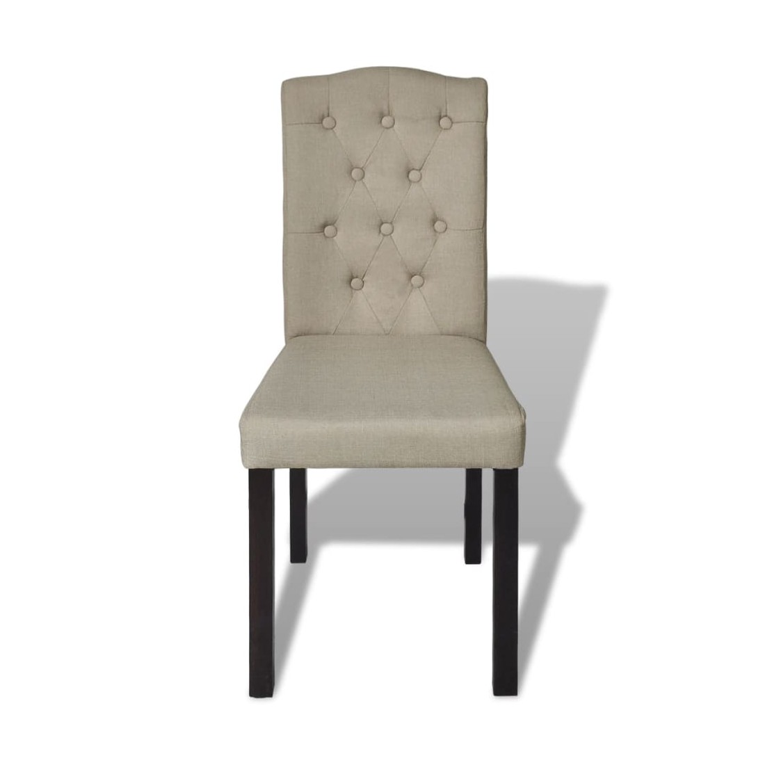 Cet ensemble de 4 chaises chics au « chesterfield look » présente un design classique et une élégance discrète. Le revêtement confortable en tissu d'aspect lin offre un confort d'assise agréable et s'intègre parfaitement dans une grande variété d'intérieurs.