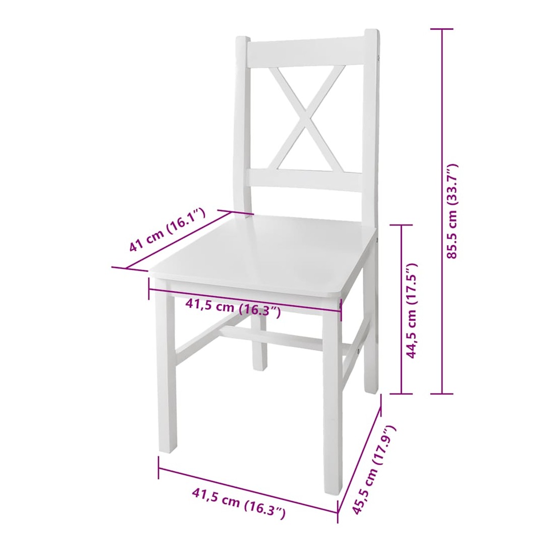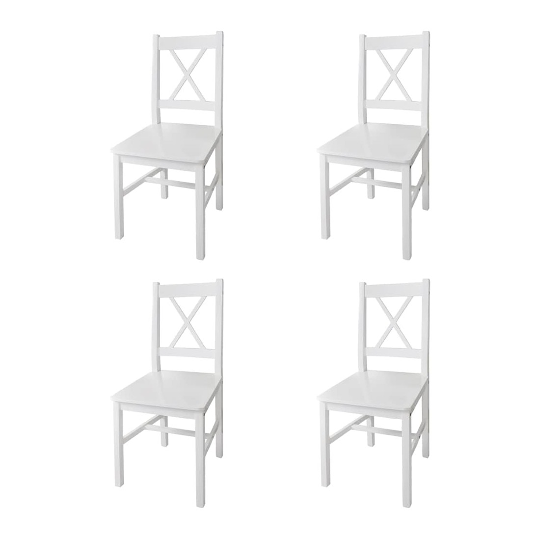Ce set de chaises à manger, au design simple mais élégant, se compose de 4 chaises et fera un excellent ajout dans votre salle à manger ou votre cuisine. Bois de pin massif : les chaises sont faites de bois de pin massif, ce qui les rend très stables et durables. Design ergonomique : la chaise à manger en bois est conçue de manière ergonomique pour plus de confort. Facile à nettoyer : la chaise à manger est facile à nettoyer grâce à sa finition de peinture lisse.