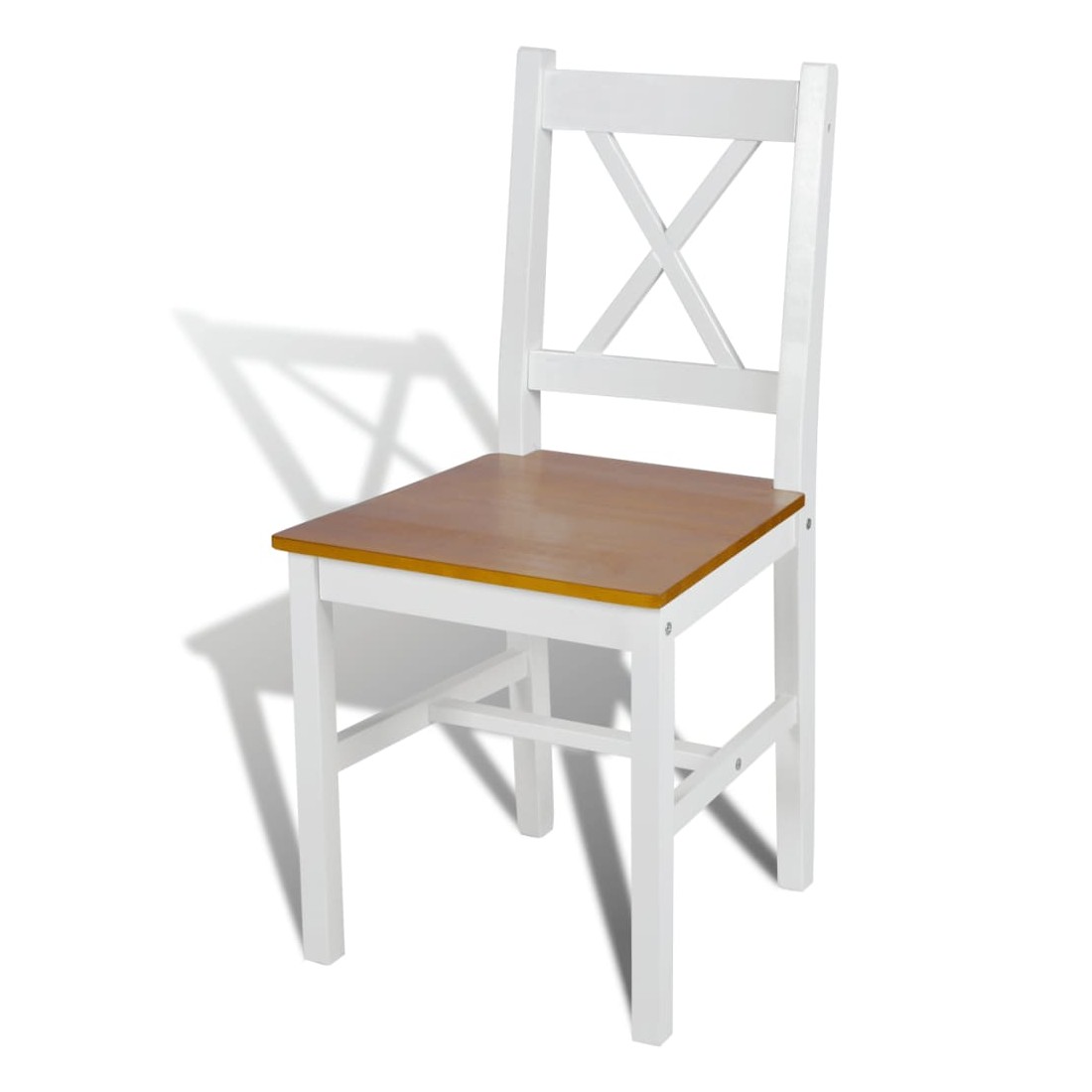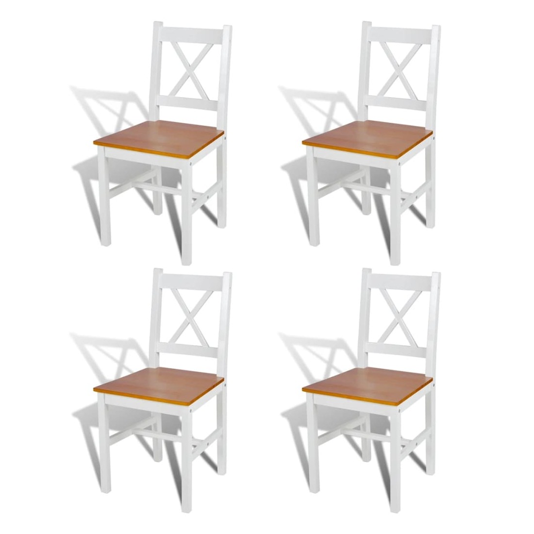 Ce set de chaises à manger, au design simple mais élégant, se compose de 4 chaises et fera un excellent ajout dans votre salle à manger ou votre cuisine.Les chaises sont faites de bois de pin massif, ce qui les rend très stables et durables. La chaise de salle à manger est également facile à nettoyer grâce à sa finition peinte. Elle est conçue de façon ergonomique pour un confort accru.La livraison comprend 4 chaises à manger.