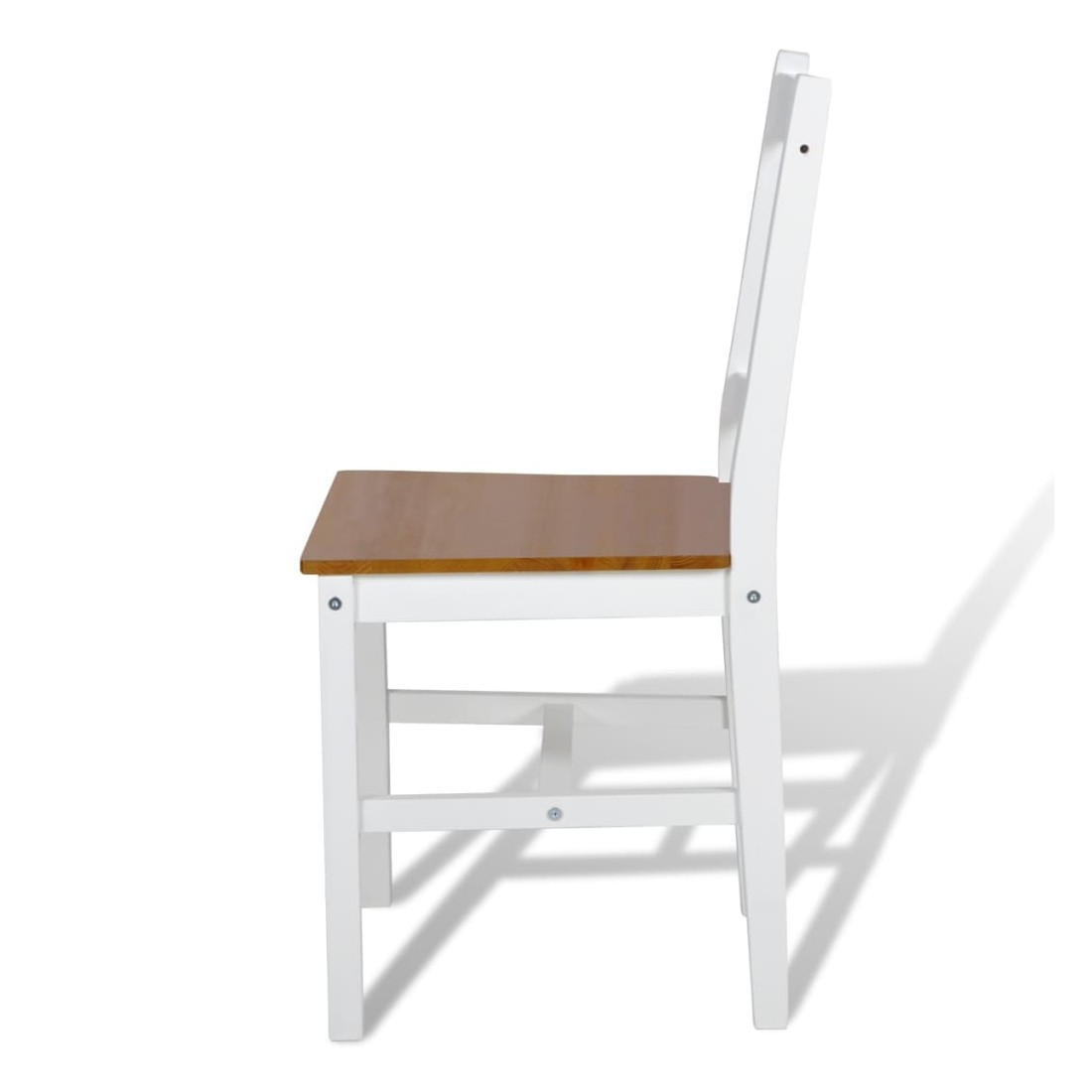 Ce set de chaises à manger, au design simple mais élégant, se compose de 4 chaises et fera un excellent ajout dans votre salle à manger ou votre cuisine. Les chaises sont faites de bois de pin massif, ce qui les rend très stables et durables. La chaise de salle à manger est également facile à nettoyer grâce à sa finition peinte. Elle est conçue de façon ergonomique pour un confort accru. La livraison comprend 4 chaises à manger.