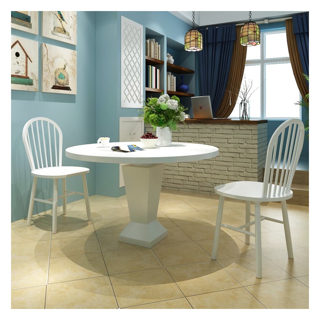 Cet ensemble, composé de 2 chaises de salle à manger en bois de style classique, sera un excellent supplément à votre salle à manger ou à votre cuisine. Les dossiers arrondis leur confèrent un charme rustique et ajoutent à votre confort d'assise, tandis que leur construction en bois d'hévéa solide les rend stables et durables. La livraison comprend 2 chaises.