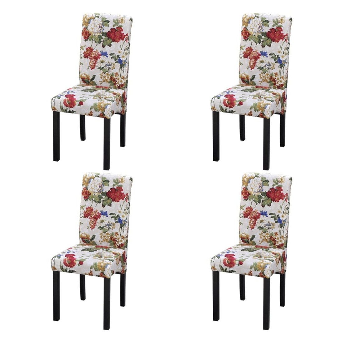 Ces chaises de salle à manger de haute qualité ont un motif floral romantique et donneront à votre espace de vie une touche colorée et élégante. Les chaises seront idéales pour dîner dans la salle à manger ou pour lire et vous détendre dans le salon. Grâce au cadre en bois solide, les chaises sont durables et stables. Les sièges et les dossiers épaississement rembourrés contribuent à leur confort supérieur. La livraison comprend 4 chaises de salle à manger.