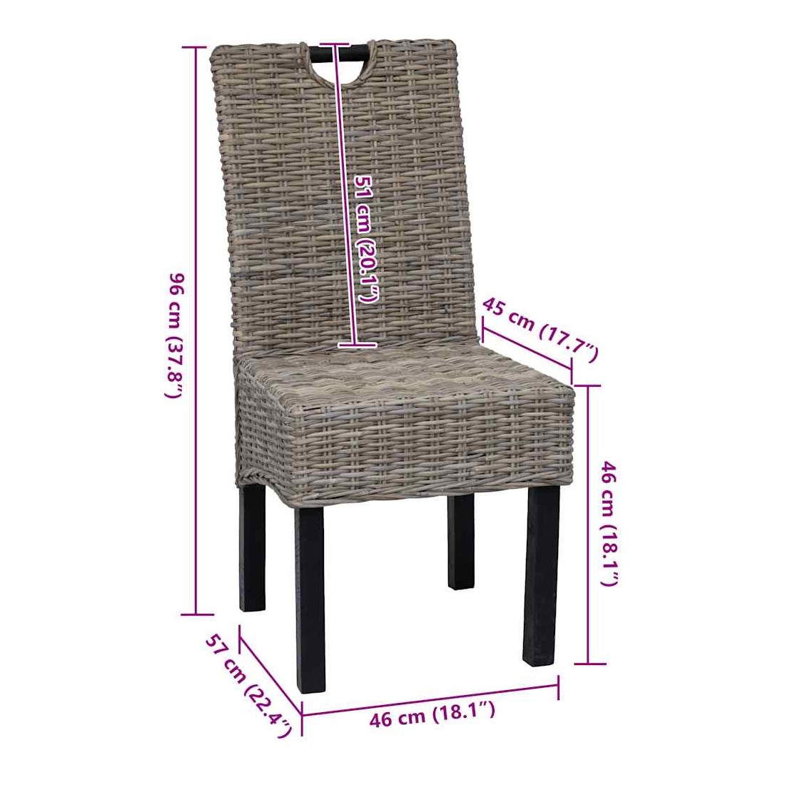 Cet ensemble de chaises de salle à manger en rotin Kubu sera un excellent ajout au décor de votre salle à manger ou salon. Les cadres en bois de manguier et le tissage en rotin authentique rendent les chaises non seulement solides structurellement mais également agréables à l’œil. Les sièges recouverts de rotin sont très confortables et faciles à nettoyer. Si vous cherchez quelque chose pour compléter votre décor de cuisine ou de salle à manger, ces chaises attrayantes tissées à la main sont un excellent choix. La livraison comprend 2 chaises de salle à manger.