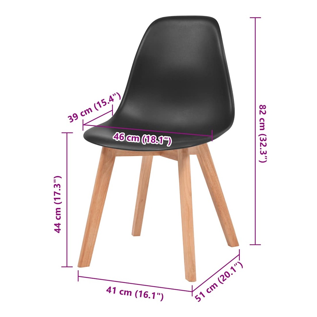 • Matériau : siège en plastique + pieds en bois d'hévéa