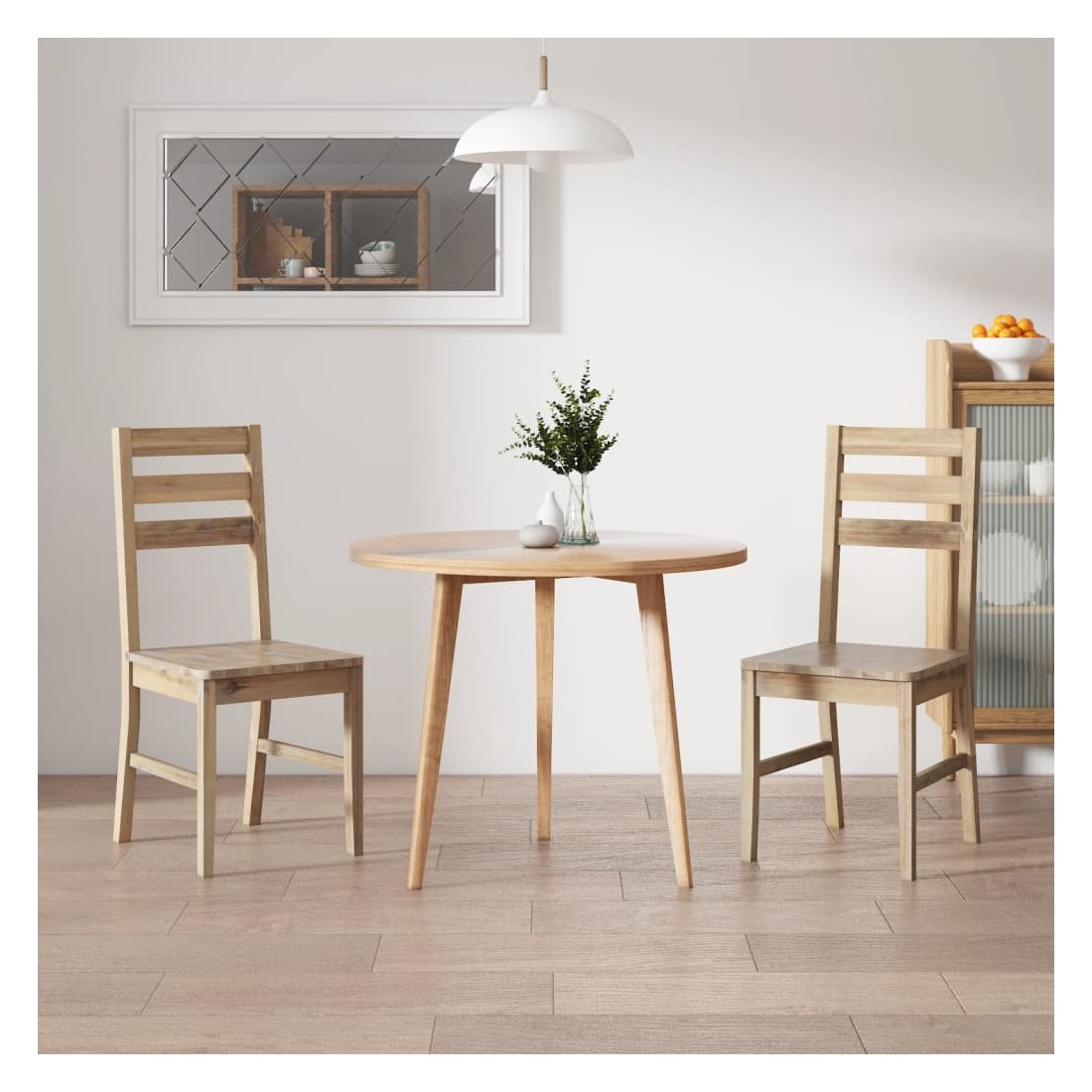 Cet élégant ensemble de chaises de salle à manger en bois saura attirer l'attention dans votre cuisine ou salle à manger. Les chaises sont faites de bois d'acacia massif, ce qui les rend robustes et stables. Les chaises de salle à manger sont également faciles à nettoyer grâce à leur surface brossée. La livraison comprend 2 chaises de salle à manger. Les chaises de salle à manger sont faciles à assembler.