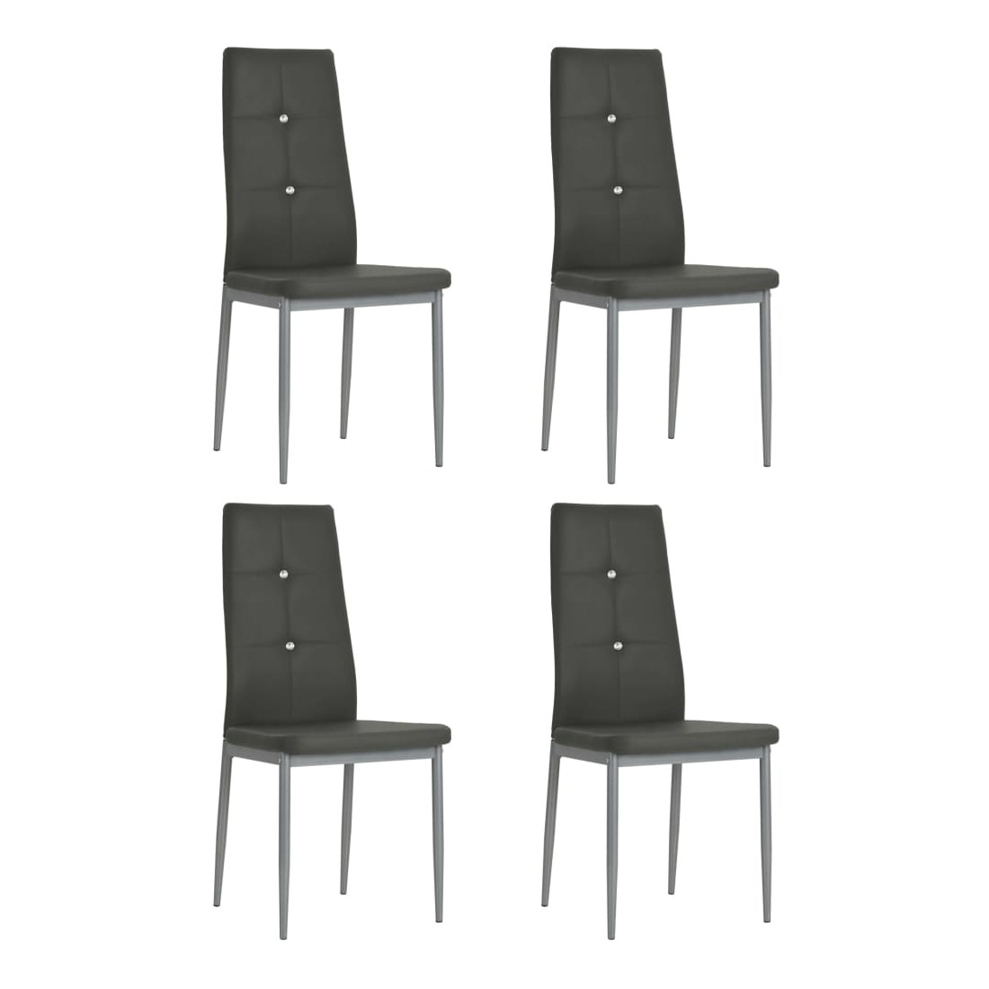 Ces chaises de salle à manger de haute qualité ont un design chic et élégant et apporteront une touche moderne à votre décor. La chaise a une structure en bois avec des pieds en acier et un siège rembourré recouvert de cuir artificiel. Le dossier de forme ergonomique est décoré d'une paire de cristaux pour donner à chaque chaise son aspect exquis. Les chaises sont faciles à assembler. La livraison comprend 4 chaises de salle à manger.