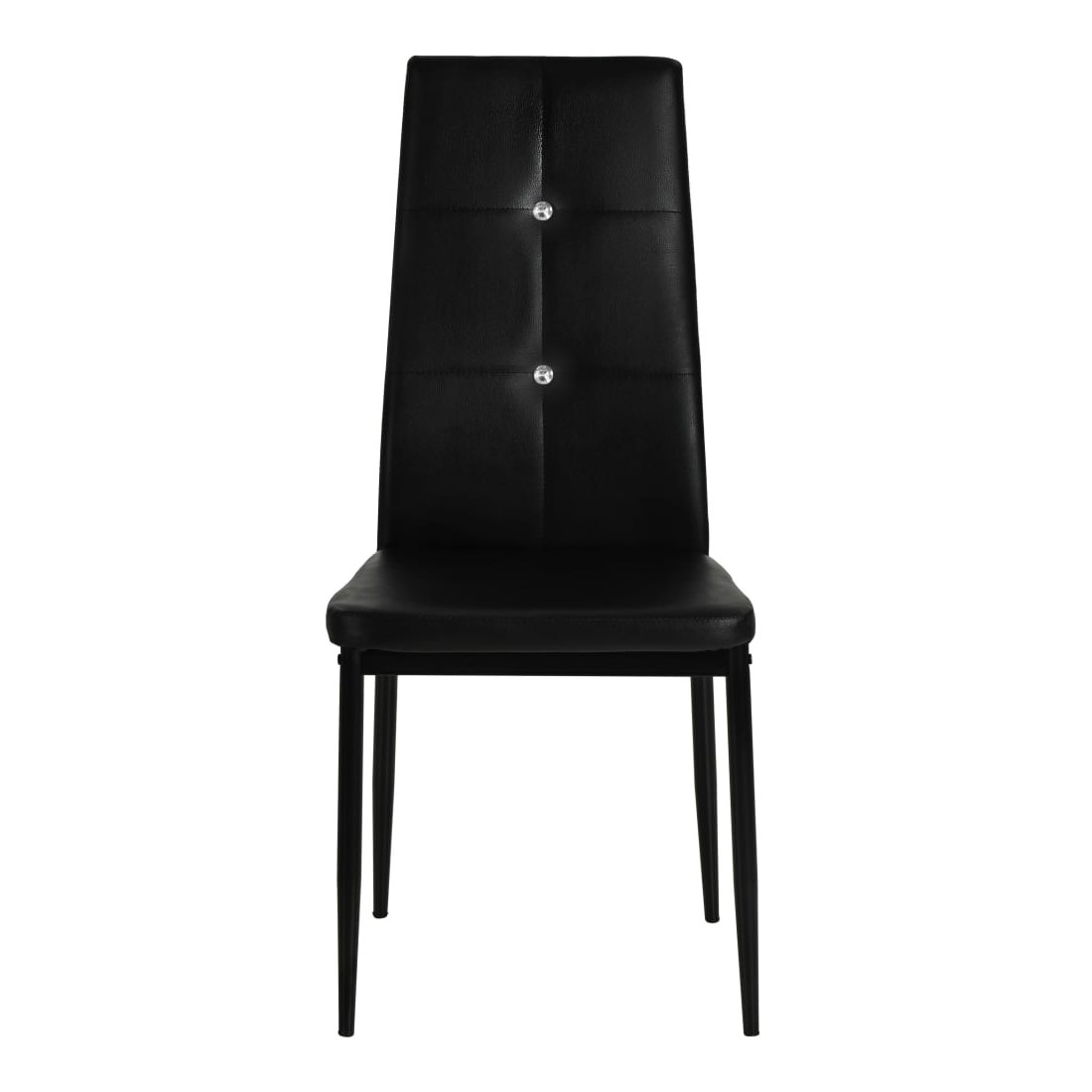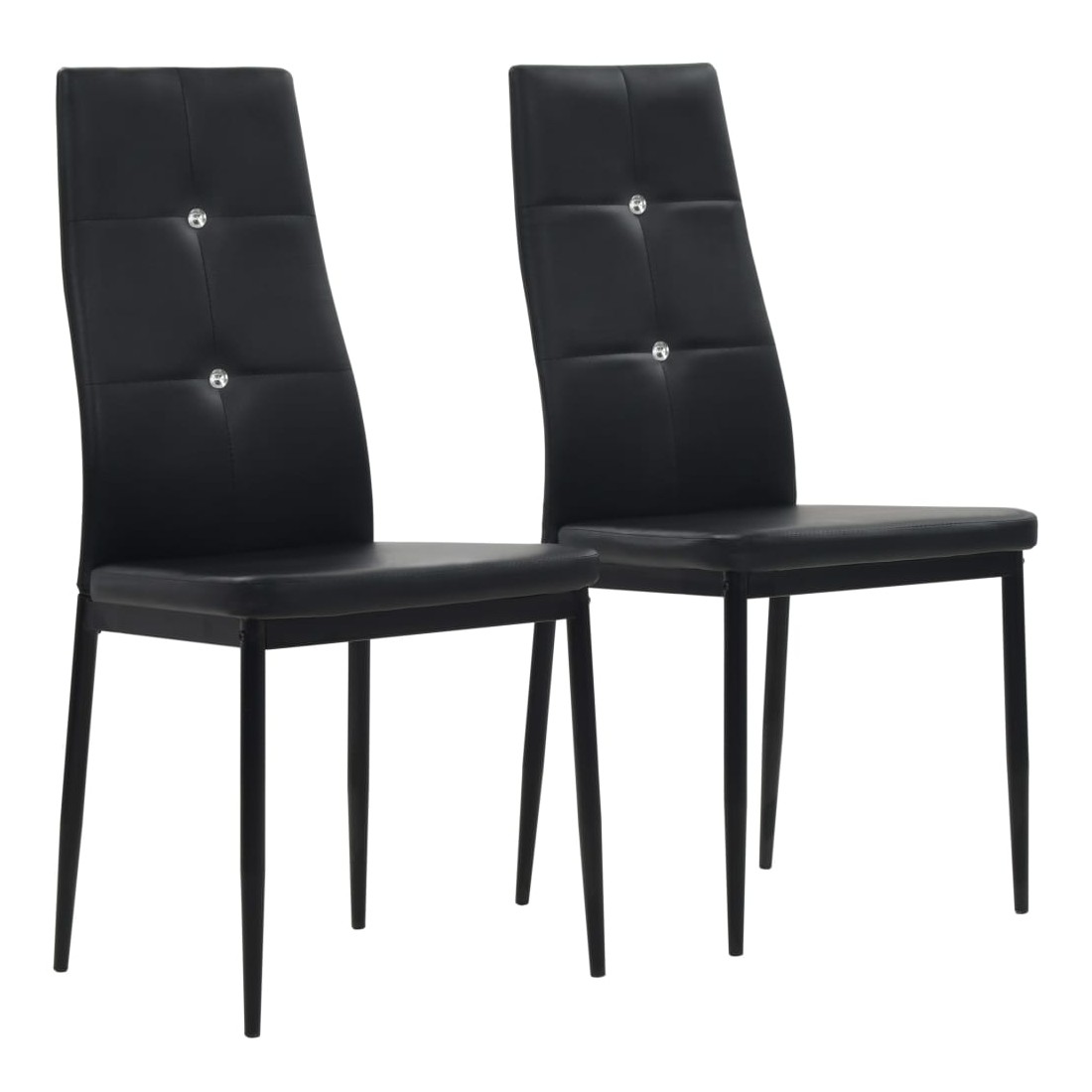 Ces chaises de salle à manger de haute qualité ont un design chic et élégant et apporteront une touche moderne à votre décor. La chaise a une structure en bois avec des pieds en acier et un siège rembourré recouvert de cuir artificiel. Le dossier de forme ergonomique est décoré d'une paire de cristaux pour donner à chaque chaise son aspect exquis. Les chaises sont faciles à assembler. La livraison comprend 2 chaises de salle à manger.