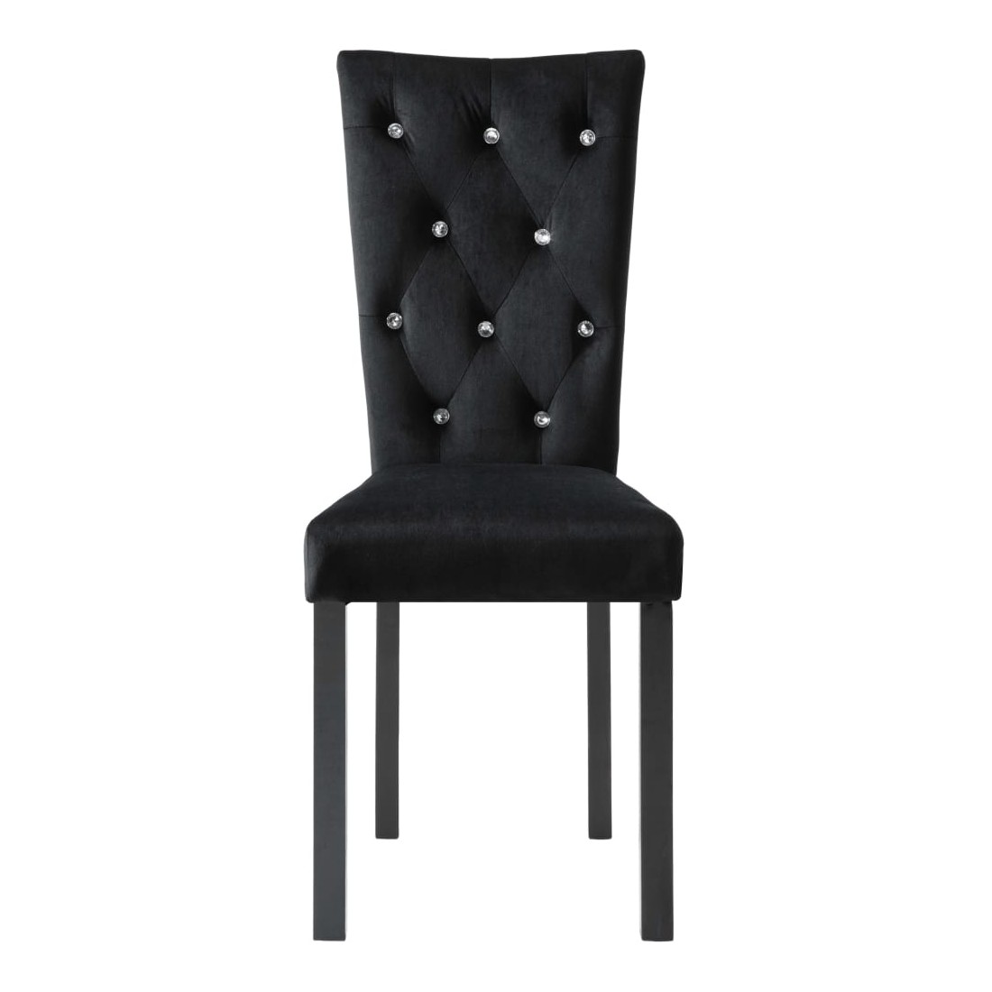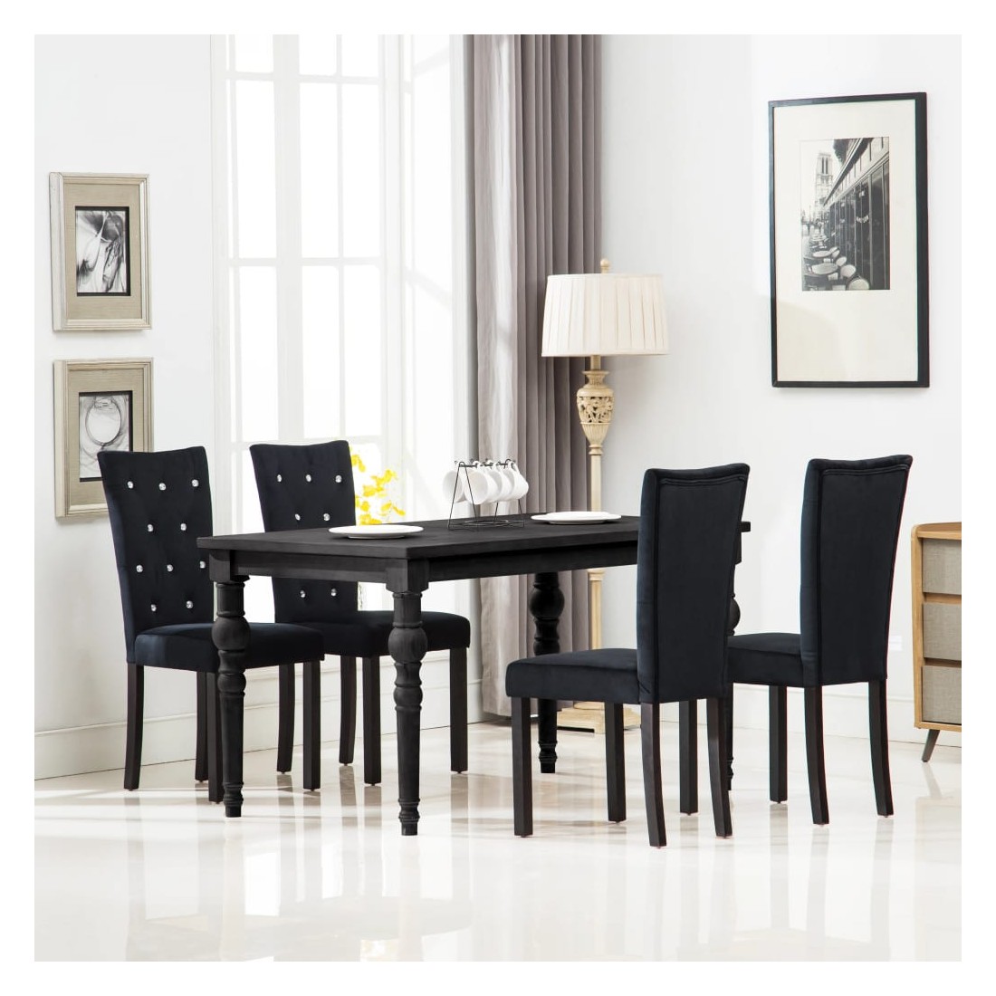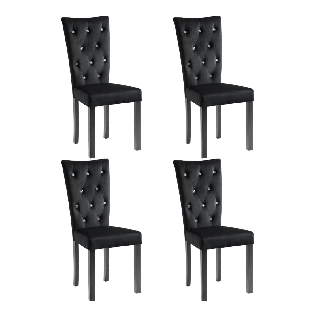Donnez à la décoration de votre intérieur un air d'élégance avec notre ensemble de chaises de salle à manger en velours. Les chaises ont été boutonnées de cristaux, ce qui leur donne un aspect glamour. Les chaises disposent d'une structure en bois solide et robuste et sont rembourrées dans un tissu velours de haute qualité, qui est doux et durable. Grâce à leurs sièges et dossiers à rembourrage épais, ces chaises de salle à manger sont très confortables. L'assemblage est facile. La livraison comprend 4 chaises de salle à manger.