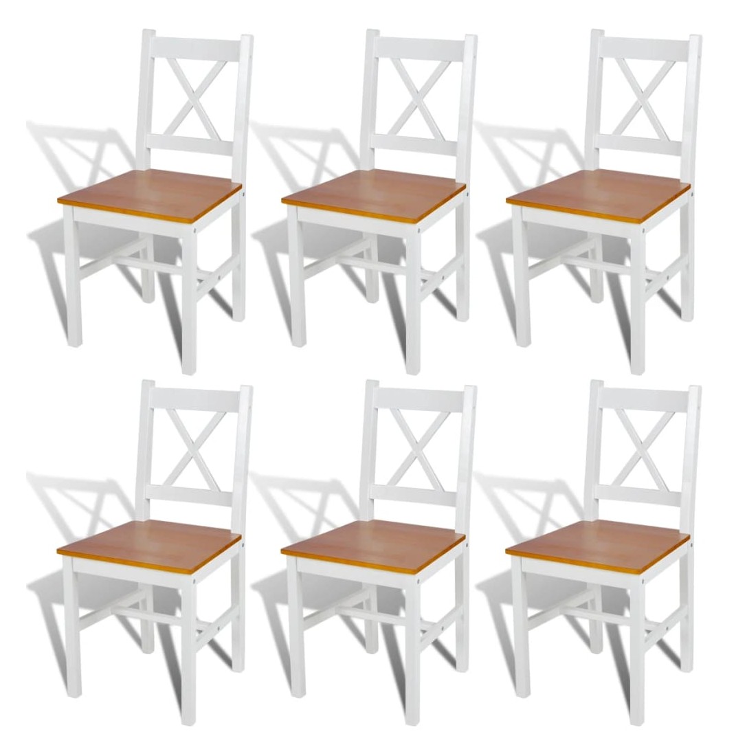 Cet ensemble de chaises à manger en bois, au design simple pourtant élégant, se compose de 6 chaises et sera un excellent supplément dans votre salle à manger ou cuisine.Les chaises sont fabriquées en bois de pin massif, ce qui les rend très stables et durables. Elles sont également faciles à nettoyer grâce à leur finition peinte lisse. Elles sont conçues de façon ergonomique pour un confort accru.La livraison comprend 6 chaises à manger.