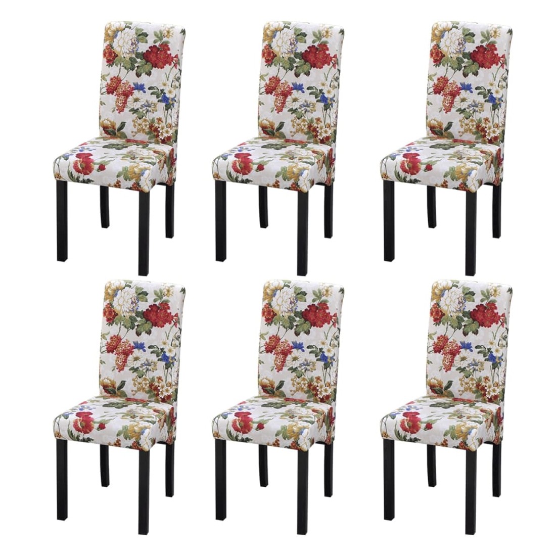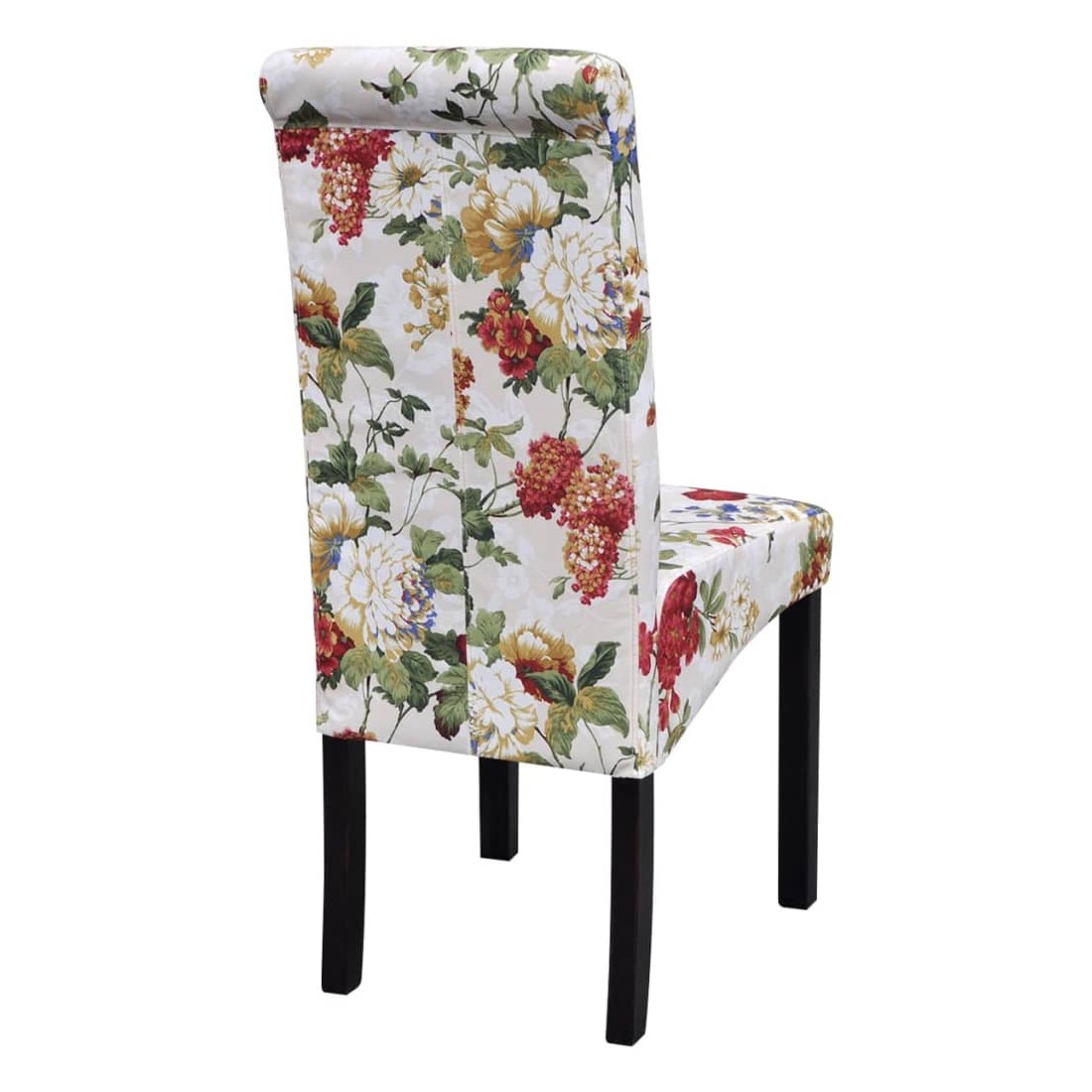 Ces chaises à manger de haute qualité ont un motif floral romantique et donneront à votre espace de vie une touche colorée et élégante. Les chaises seront idéales pour dîner dans la salle à manger ou pour lire et vous détendre dans le salon. Grâce au cadre en bois solide, les chaises sont durables et stables. Les sièges et les dossiers épaississement rembourrés contribuent à leur confort supérieur. La livraison comprend 6 chaises de salle à manger.