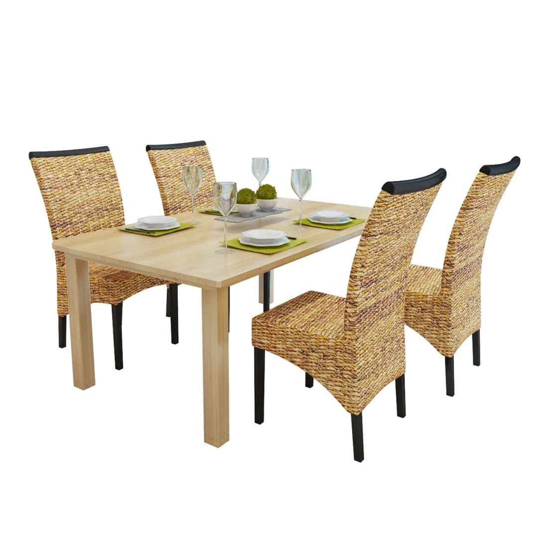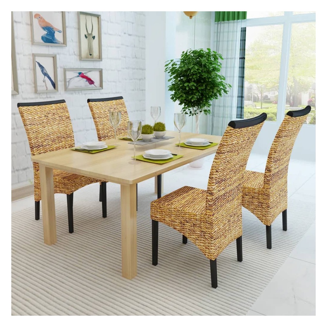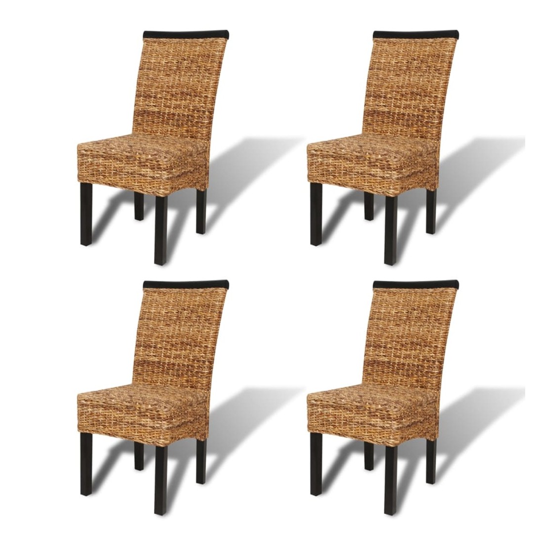 Il s'agit d'une ensemble de 4 chaises en fibres d'abaca tissées, faites à la main et de haute qualité. Grâce à leur style philippin, ces chaises en fibres d'abaca tissées seront un excellent ajout à votre intérieur. La structure en bois dur et les fibres d'abaca naturelles (feuilles de banane) rendent les chaises non seulement stables et robustes mais également agréables à l’œil. De plus, les sièges recouverts d'abaca sont très confortables. Si vous cherchez quelque chose pour compléter votre décor de cuisine ou de salle à manger, ces chaises habilement tissées sont un excellent choix. La livraison comprend 4 chaises. Veuillez noter : les chaises sont tissées à la main avec des fibres d'abaca naturelles, elles peuvent donc avoir des variations de couleur.