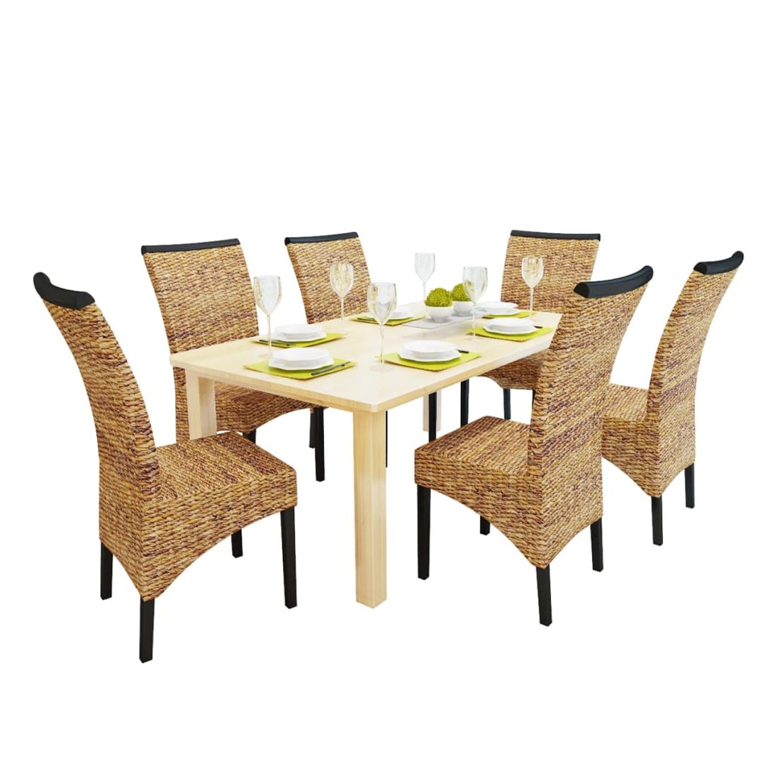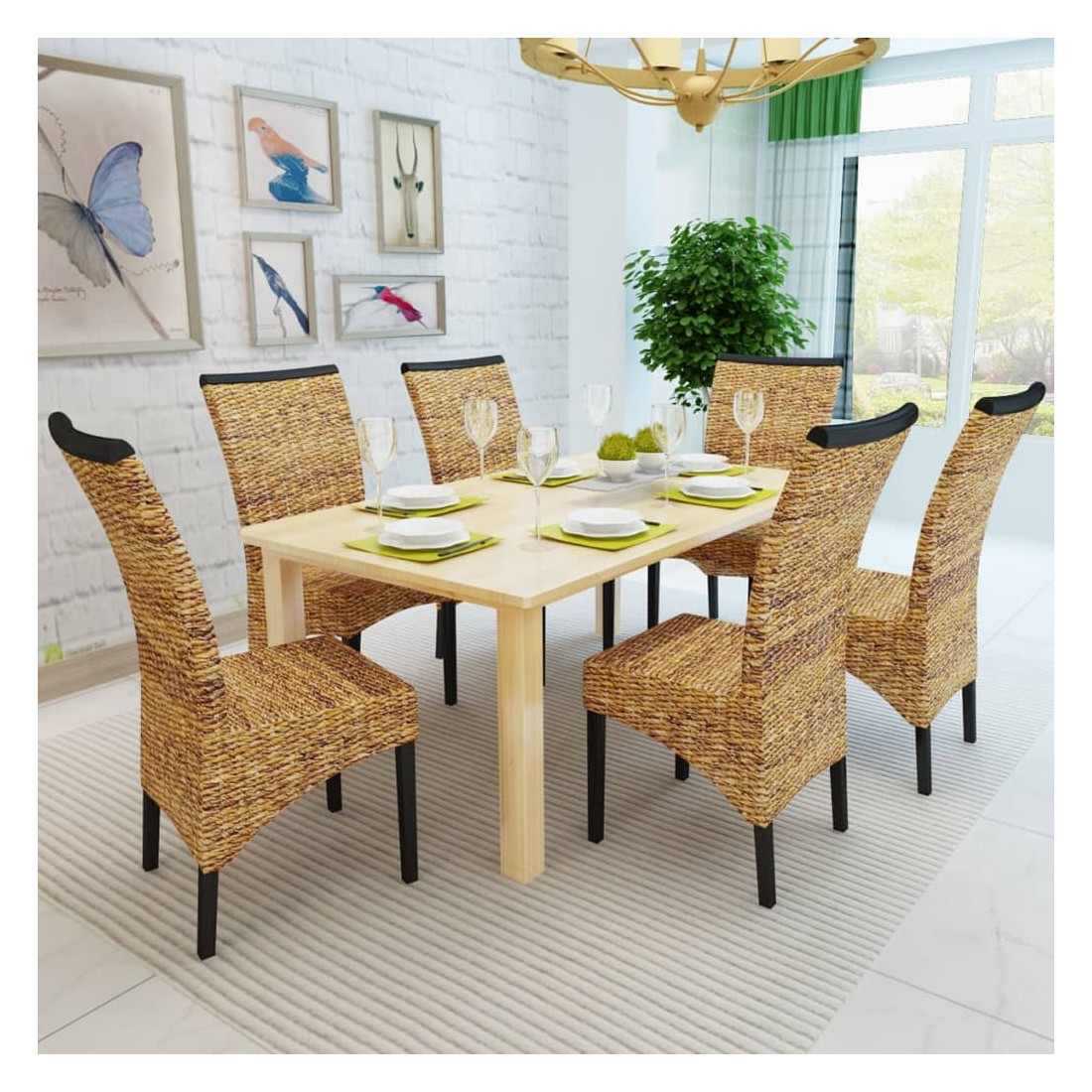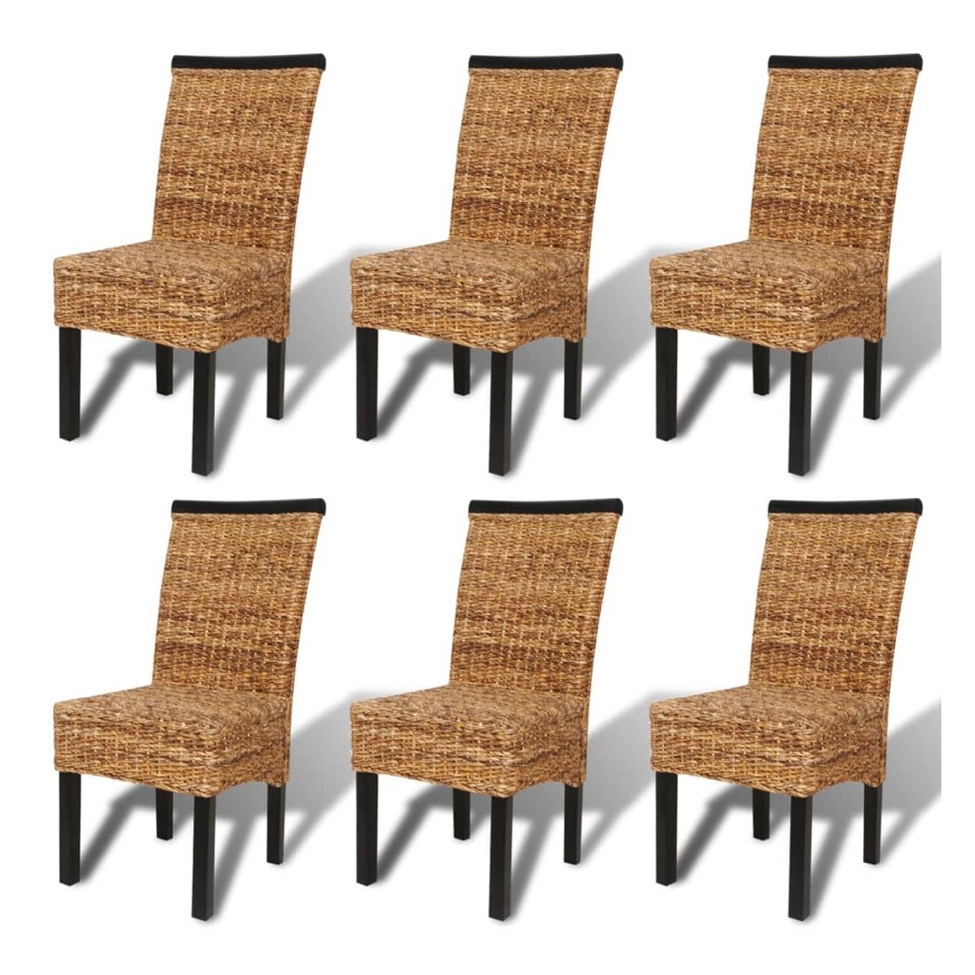 Il s'agit d'une ensemble de 6 chaises en fibres d'abaca tissées, faites à la main et de haute qualité. Grâce à leur style philippin, ces chaises en fibres d'abaca tissées seront un excellent ajout à votre intérieur. La structure en bois dur et les fibres d'abaca naturelles (feuilles de banane) rendent les chaises non seulement stables et robustes mais également agréables à l’œil. De plus, les sièges recouverts d'abaca sont très confortables. Si vous cherchez quelque chose pour compléter votre décor de cuisine ou de salle à manger, ces chaises habilement tissées sont un excellent choix. La livraison comprend 6 chaises. Veuillez noter : les chaises sont tissées à la main avec des fibres d'abaca naturelles, elles peuvent donc avoir des variations de couleur.