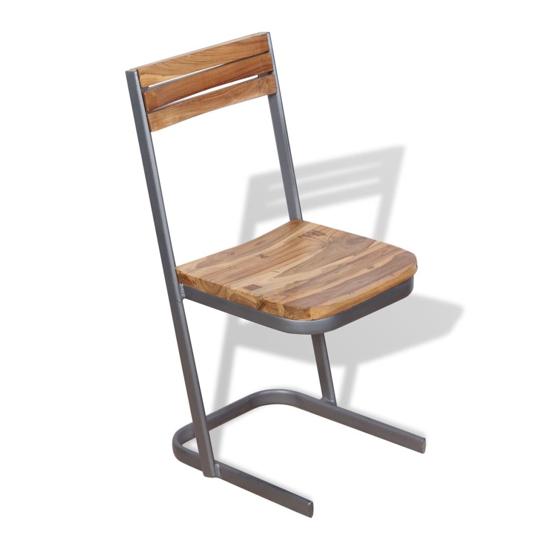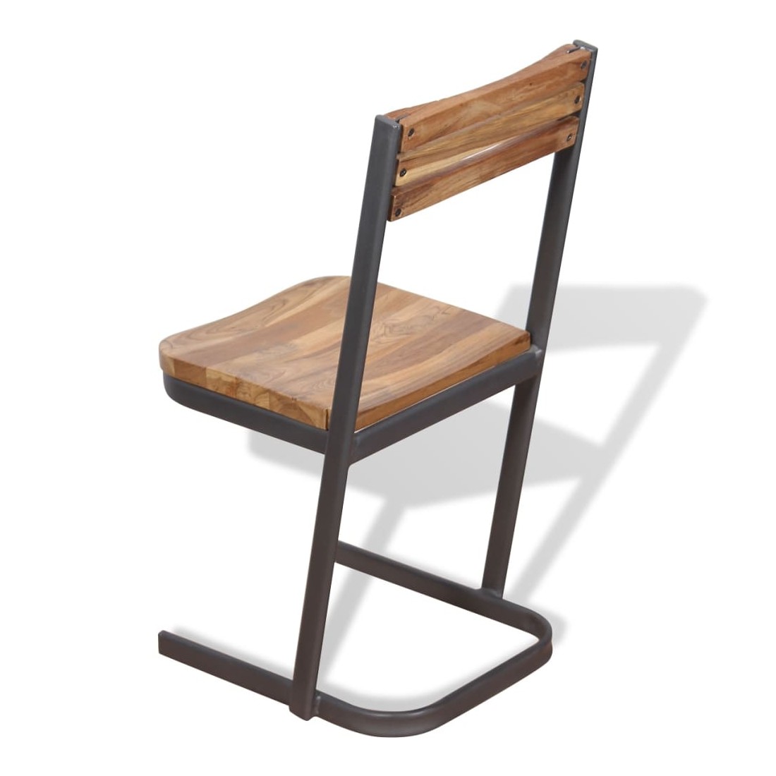 Cet ensemble de chaises de salle à manger, avec son design moderne, sera approprié à toute cuisine ou salle à manger. Fabriquées en teck massif, ces chaises sont robustes et durables. Les pieds sont faits de fer durable qui s'ajoute à leur robustesse et peuvent être nettoyés facilement. L'artisanat et les beaux grains de bois rendent chaque meuble unique et légèrement différent de l'autre. Remarque importante : les couleurs varient d'une pièce à l'autre, rendant chacune de nos chaises de salle à manger unique. La livraison est aléatoire. La livraison comprend 6 chaises.