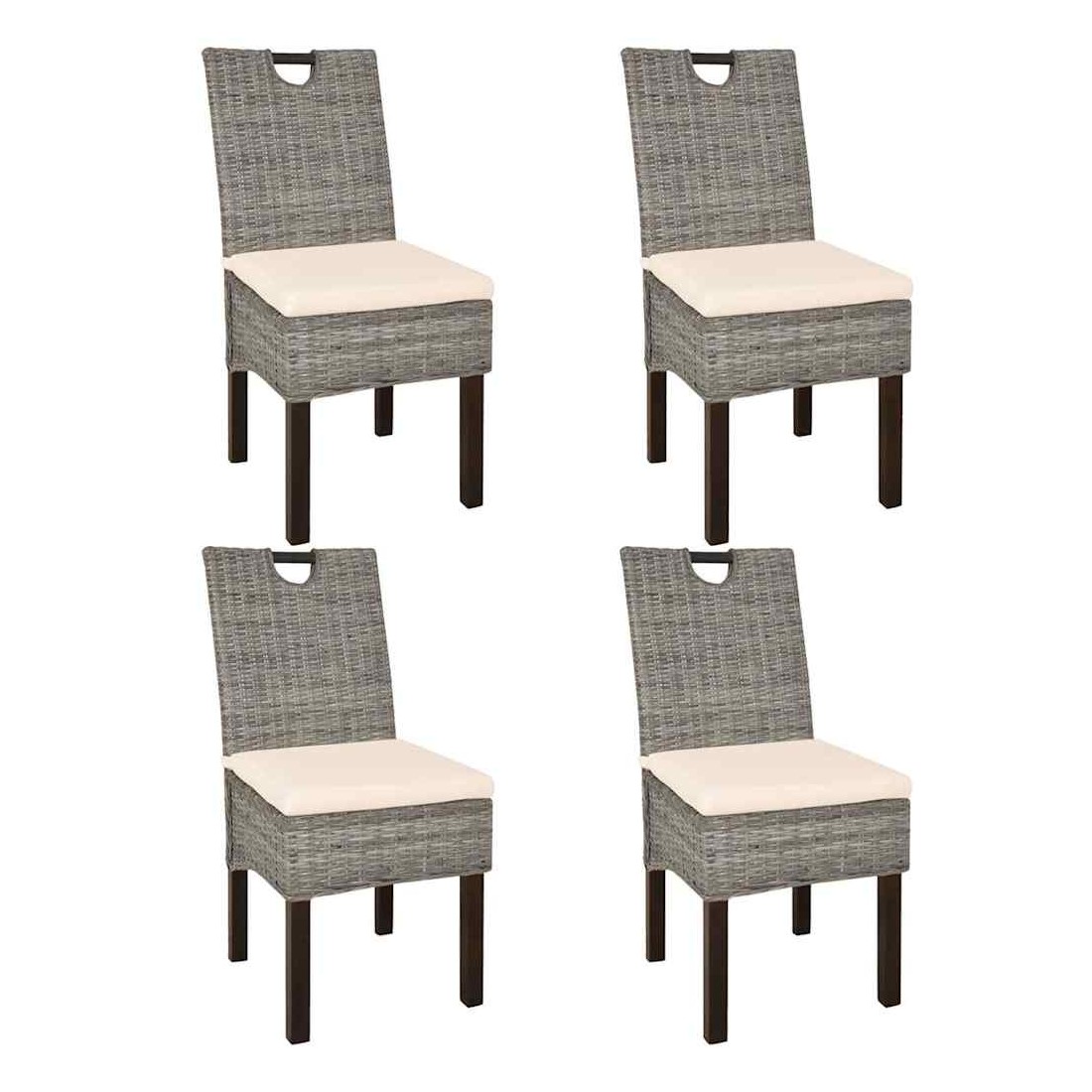 Cet ensemble de chaises de salle à manger en rotin Kubu sera un excellent ajout au décor de votre salle à manger ou salon. Les cadres en bois de manguier et le tissage en rotin authentique rendent les chaises non seulement solides sur le plan structurel mais également agréables à l’œil. Les sièges recouverts de rotin sont très confortables et faciles à nettoyer. Les coussins de siège épais sont très confortables et lavables grâce à leurs housses de coussin amovibles. Si vous cherchez quelque chose pour compléter votre décor de cuisine ou de salle à manger, ces chaises attrayantes tissées à la main sont un excellent choix. La livraison comprend 4 chaises de salle à manger, 4 coussins de siège.