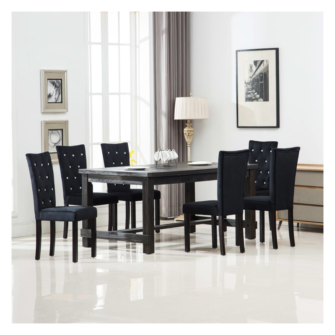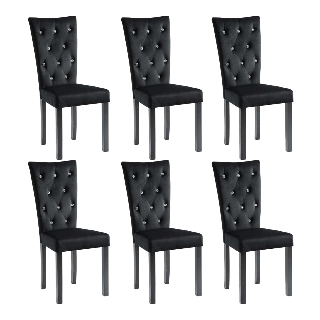Donnez à la décoration de votre intérieur un air d'élégance avec notre ensemble de chaises de salle à manger en velours. Les chaises ont été boutonnées de cristaux, ce qui leur donne un aspect glamour. Les chaises disposent d'une structure en bois solide et robuste et sont rembourrées dans un tissu velours de haute qualité, qui est doux et durable. Grâce à leurs sièges et dossiers à rembourrage épais, ces chaises de salle à manger sont très confortables. L'assemblage est facile. La livraison comprend 6 chaises de salle à manger.