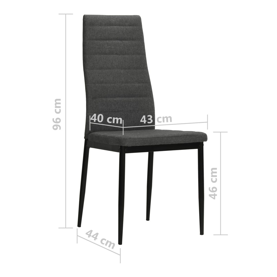 Cet ensemble de 6 chaises à manger, au design épuré et contemporain, s'intégrera parfaitement dans tous les intérieurs. Les chaises sont dotées d'un cadre en acier robuste et sont revêtues d'un tissu en polyester de haute qualité, doux et durable. Grâce à l'assise et au dossier épais, ainsi qu'au design ergonomique, ces chaises à manger sont très confortables. Les chaises sont faciles à assembler. La livraison comprend 6 chaises de salle à manger.