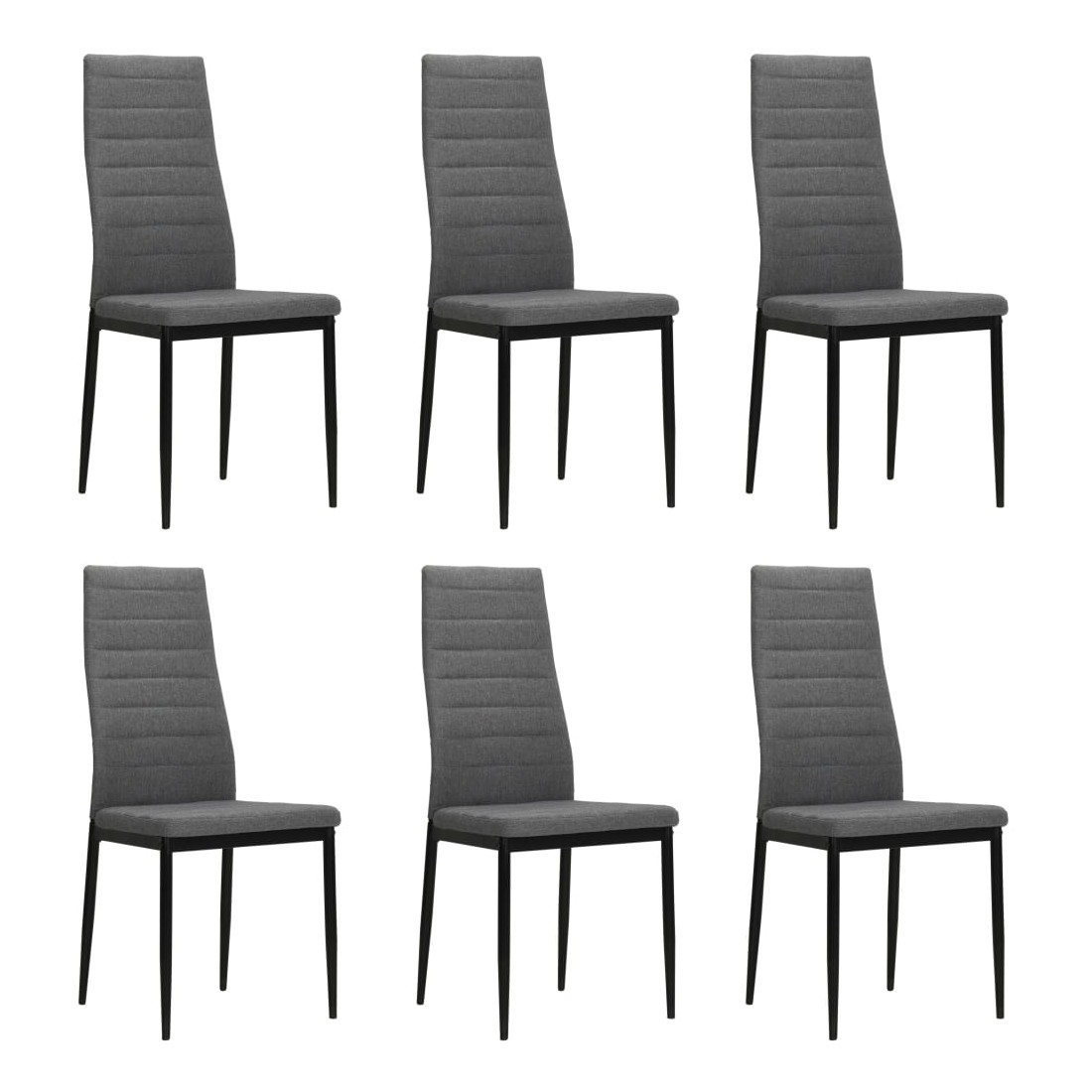 Cet ensemble de 6 chaises à manger, au design épuré et contemporain, s'intégrera parfaitement dans tous les intérieurs. Les chaises sont dotées d'un cadre en acier robuste et sont revêtues d'un tissu en polyester de haute qualité, doux et durable. Grâce à l'assise et au dossier épais, ainsi qu'au design ergonomique, ces chaises à manger sont très confortables. Les chaises sont faciles à assembler. La livraison comprend 6 chaises de salle à manger.