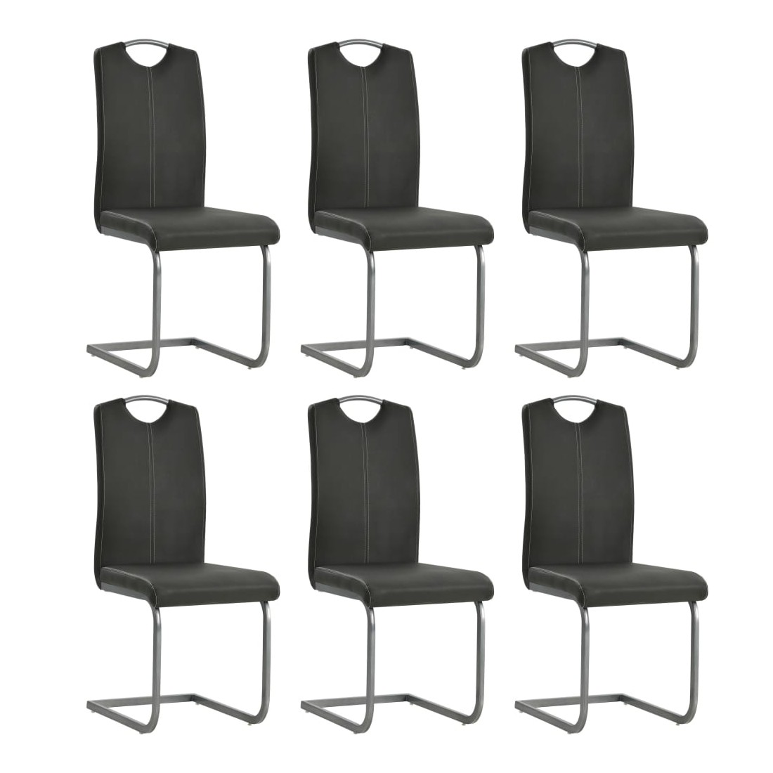 Notre ensemble de chaises cantilever à manger arbore un aspect élégant et épuré qui saura s'assortir à n'importe quelle décoration de cuisine ou de salle à manger. Recouvertes de cuir artificiel rembourré de mousse, ces chaises sont confortables et apporteront une touche de luxe à votre intérieur. Les cadres en acier robustes rendent les chaises stables et durables. L'ensemble de chaises est facile à assembler. La livraison comprend 6 chaises de salle à manger.