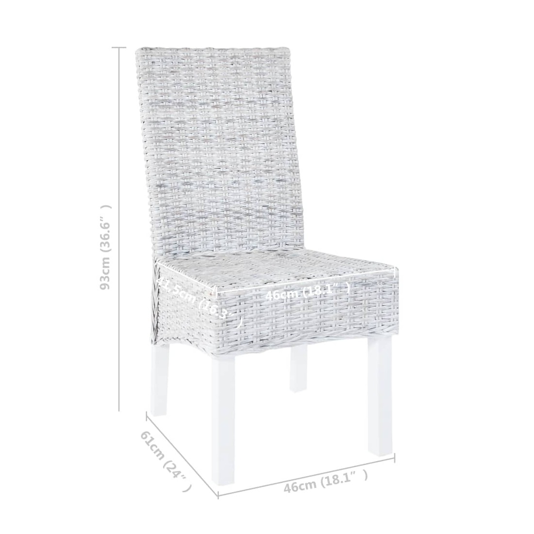 Cette chaise à manger en rotin kubu au design simple et aux couleurs parfaitement assorties fera briller votre salle à manger d'un nouvel éclat. Les cadres en bois de manguier et le tissage authentique rendent les chaises non seulement solides au niveau structurel mais également agréables au niveau esthétique. Les sièges recouverts de rotin sont très confortables et faciles à nettoyer. Si vous cherchez quelque chose pour compléter la décoration de votre cuisine ou de votre salle à manger, cet ensemble de chaises en rotin tissé à la main sera le choix idéal. La livraison comprend 6 chaises de salle à manger.