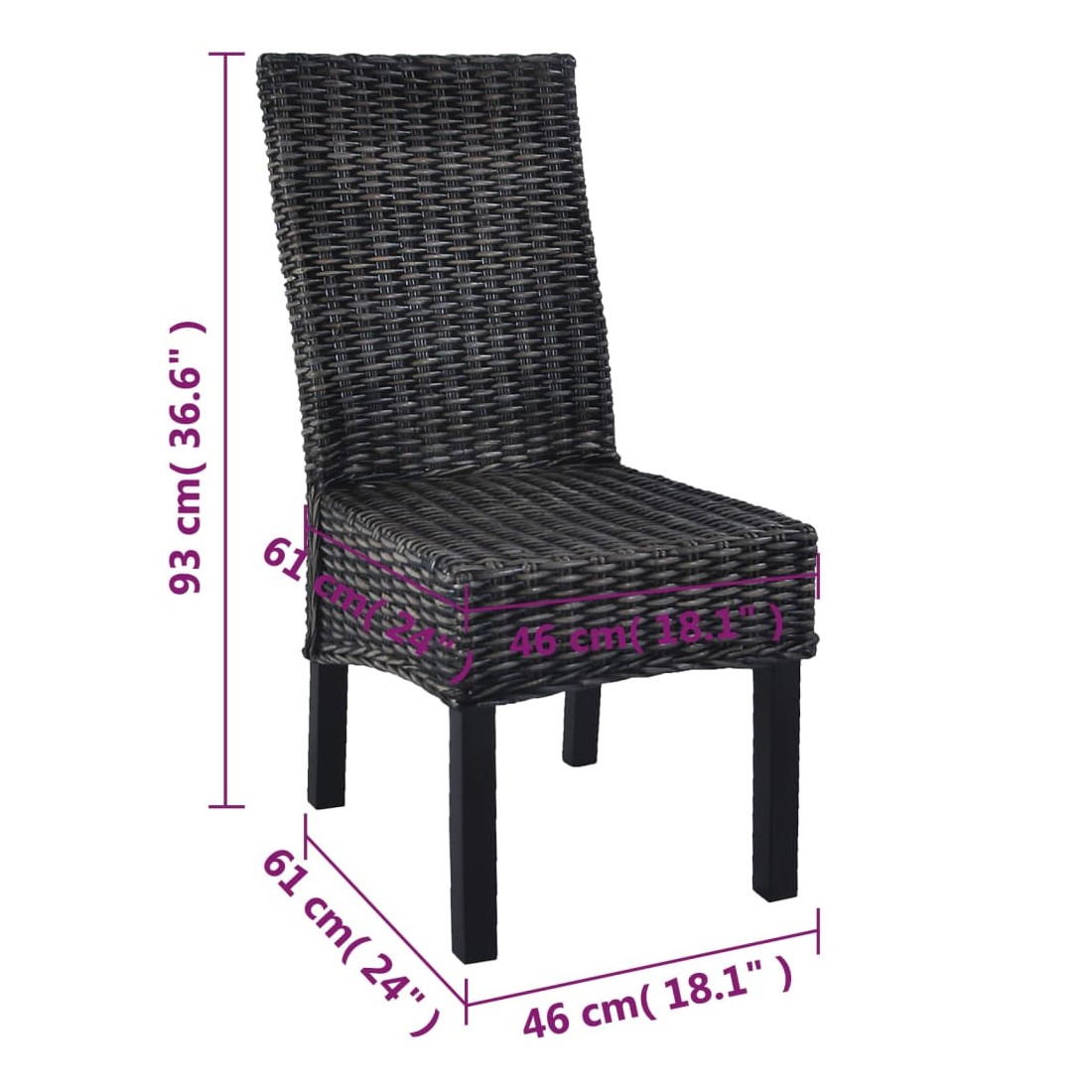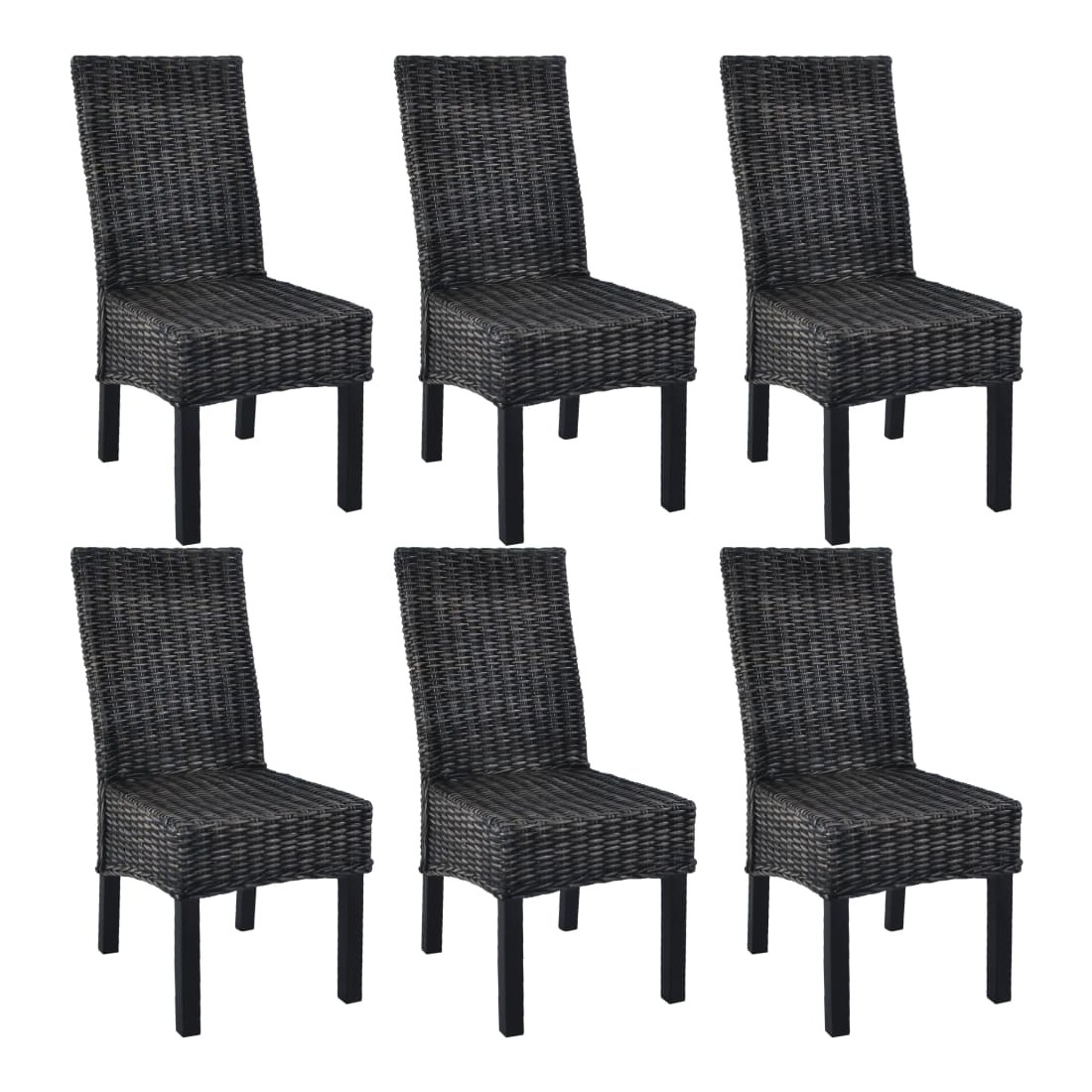 Chaises à manger lot de 6 noir rotin Kubu et bois de manguier