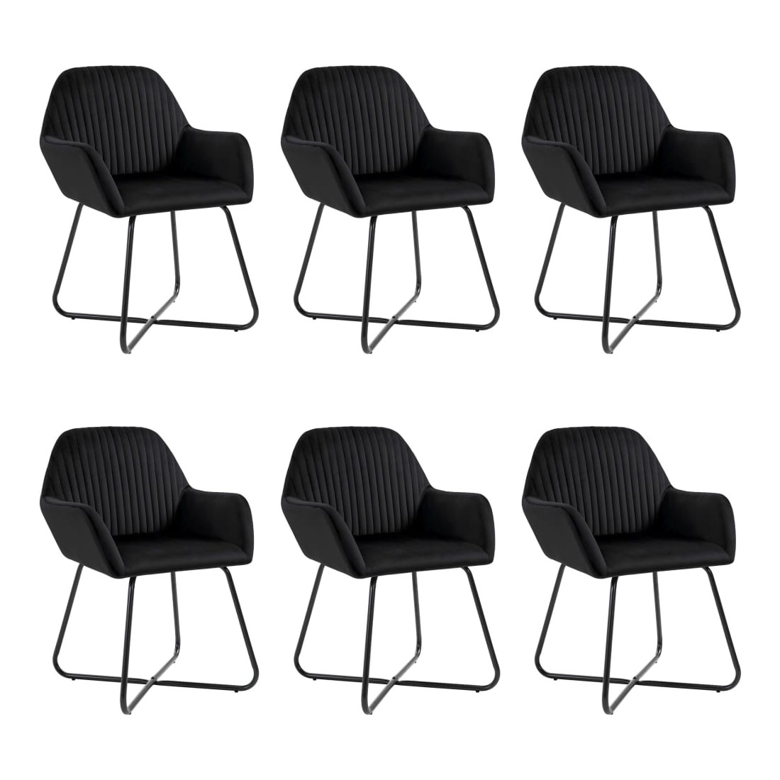 Ajoutez une touche moderne à votre salle à manger ou à votre salon avec nos chaises à manger, confortables et stables ! Fabriqué en velours de qualité, cet ensemble de 6 chaises de salle à manger est conçu de manière esthétique et ergonomique pour apporter une touche chaleureuse à votre maison. C'est un endroit confortable pour votre famille qui peut dîner dans la salle à manger ou lire et se reposer dans le salon. Grâce au siège doux, aux accoudoirs et au dossier, notre chaise va sûrement vous apporter un confort d'assise optimal. De plus, les pieds en acier enduit de poudre apportent également une grande stabilité et assurent une excellente durabilité à la chaise. La livraison comprend 6 chaises de salle à manger.