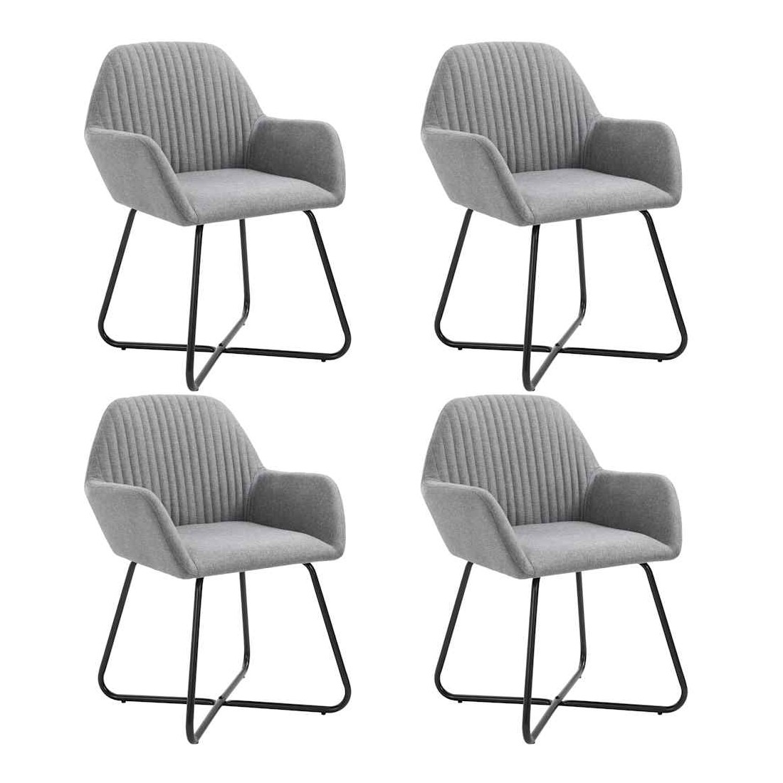 Ajoutez une touche moderne à votre salle à manger ou à votre salon avec nos chaises confortables et stables ! Fabriqué en tissu de qualité, cet ensemble de 4 chaises est conçu de manière esthétique et ergonomique pour apporter une touche chaleureuse à votre maison. C'est un endroit confortable pour votre famille qui peut dîner dans la salle à manger ou lire et se reposer dans le salon. Grâce au siège doux, aux accoudoirs et au dossier, notre chaise va sûrement vous apporter un confort d'assise optimal. De plus, les pieds en acier enduit de poudre apportent également une grande stabilité et assurent une excellente durabilité à la chaise. La livraison comprend 4 chaises de salle à manger.