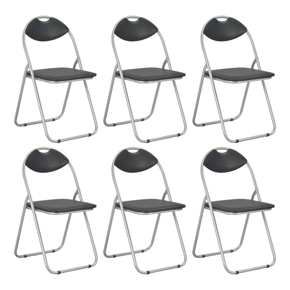 Cet ensemble de chaises pliables convient à une utilisation dans la salle à manger, la cuisine, l'entrée ou le bureau. Cet ensemble vous sera utile si vous avez besoin de plus de places assises. Elles peuvent être facilement pliées lorsqu'elles ne sont pas utilisées pour économiser de l'espace de stockage. Les cadres en acier rendent les chaises extrêmement robustes et durables. En outre, le revêtement en faux cuir résistant aux taches permet aux chaises de se nettoyer facilement avec un chiffon humide. Grâce à la construction légère, les chaises sont faciles à transporter. Nos chaises pliables sont déjà assemblées ; aucun assemblage n'est requis. La livraison comprend 6 chaises de salle à manger.